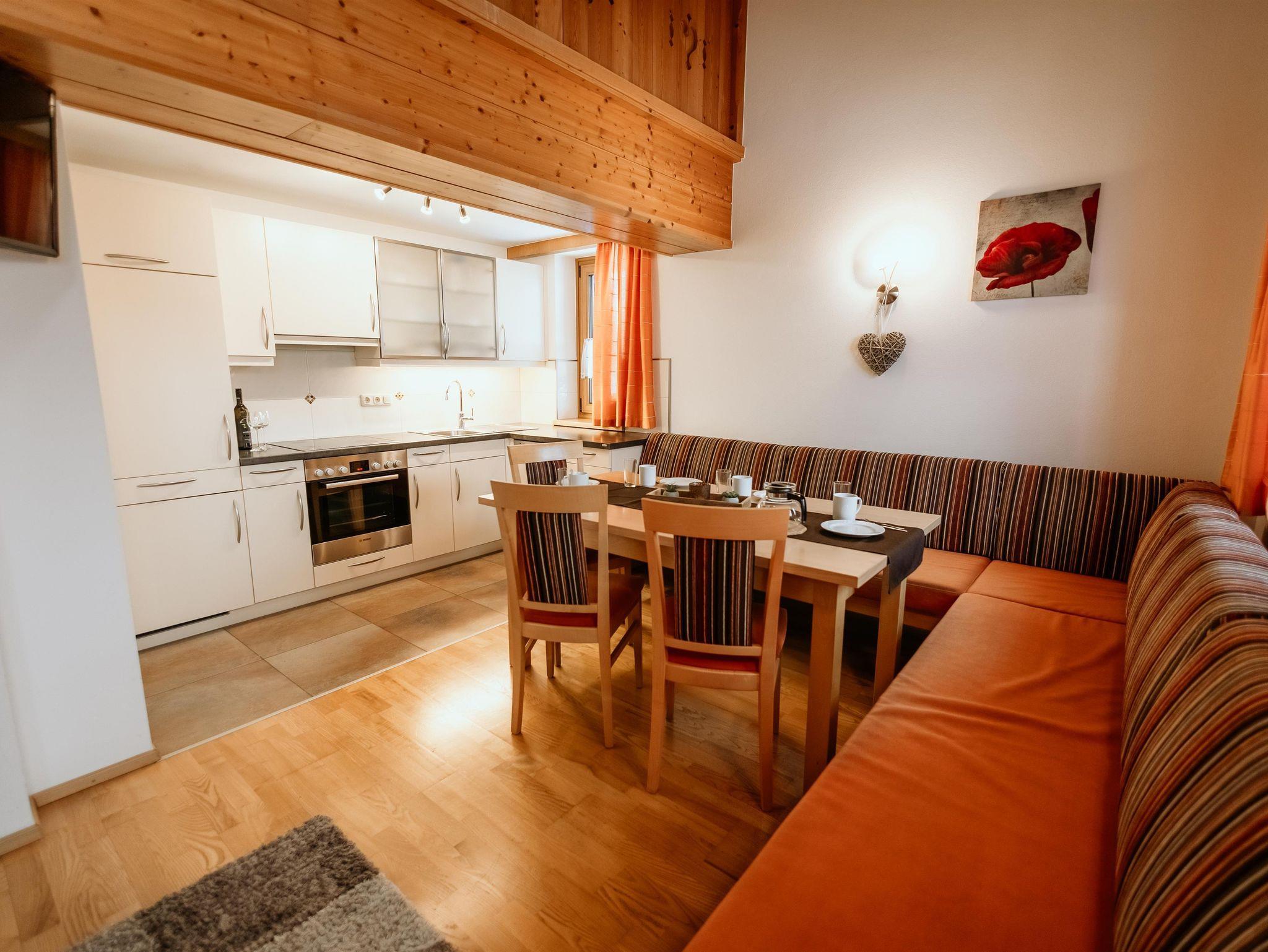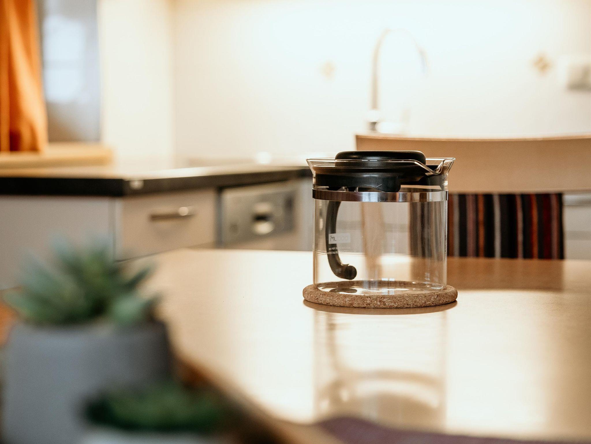 großräumige Wohnküche mit gemütlicher Essecke und Kabel-TV, Geschirrspüler.