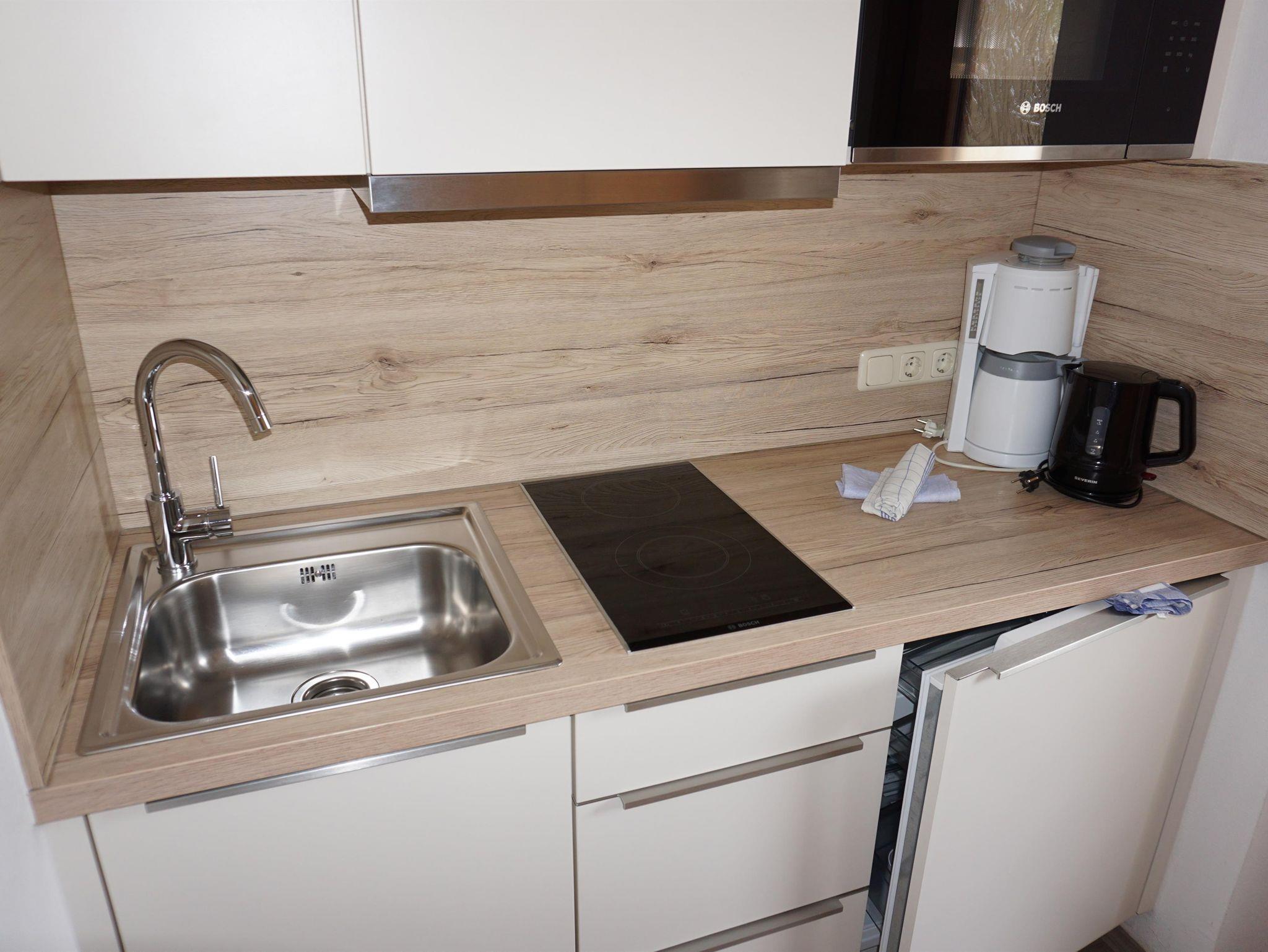 Unser Appartement A1 ist ein schönes Einraumappartement mit Dusche / WC. Es bietet neueste und qualitativ hochwertige Einrichtung und Ausstattung, die Ihren Urlaub erstklassig macht. Ein vorhandener Küchenblock erweitert die neu renovierte Wohnung.