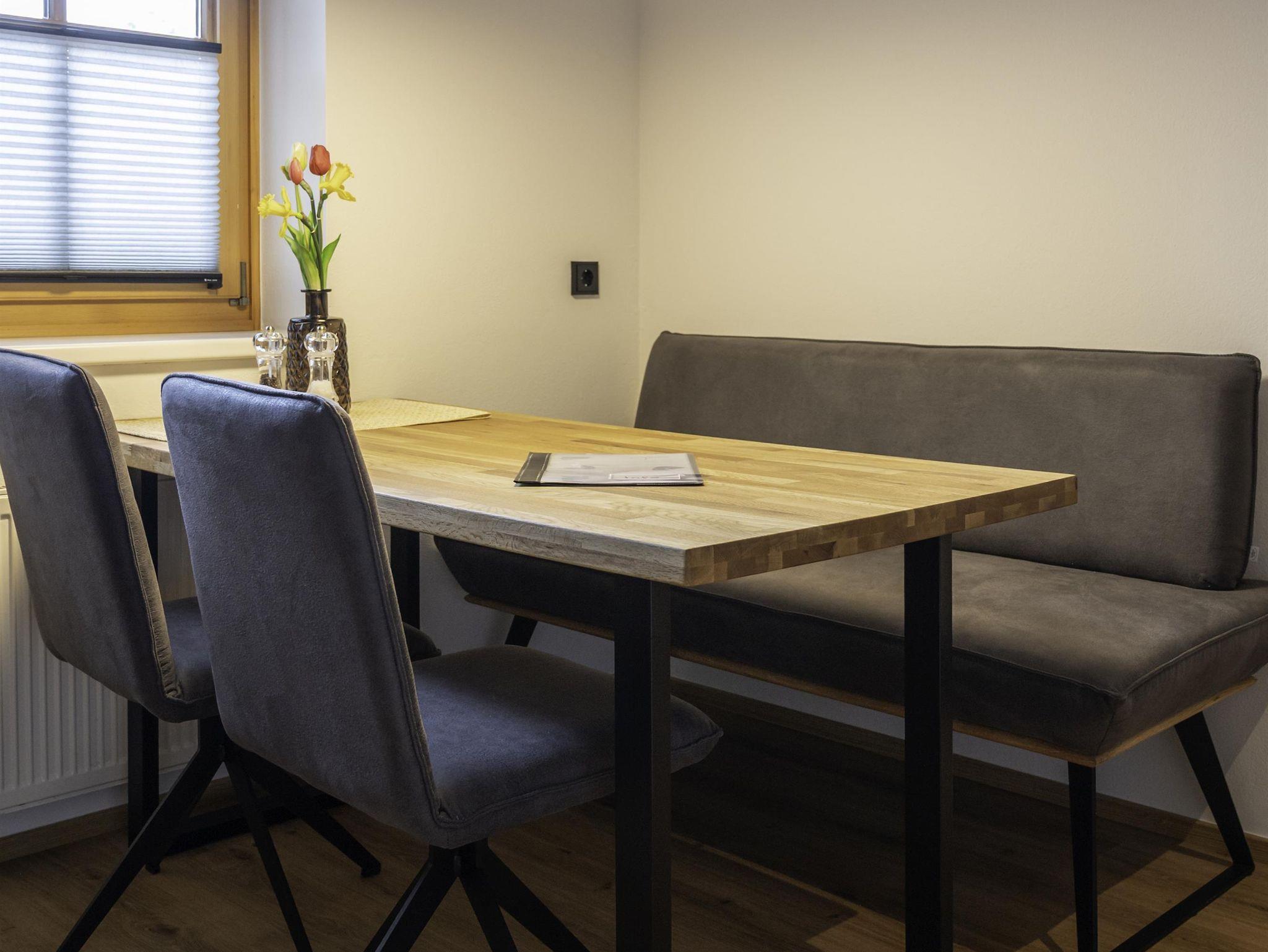 Unsere kleinste Ferienwohnung bietet Platz für 2 bis 3 Personen. Blick auf den Natrun mit schönem, südseitigen Balkon. Kinderermäßigung auf Anfrage. Raumaufteilung: Schlafzimmer, Wohnküche, Bad mit Dusche oder Badewanne, separates WC; Ausstattung: LED-TV, kostenloses WLAN, Telefon, Musikanlage, Mikrowelle, Kochplatten, Kaffeemaschine, Kühlschrank mit Gefrierfach, Fön und Kosmetikspiegel im Bad