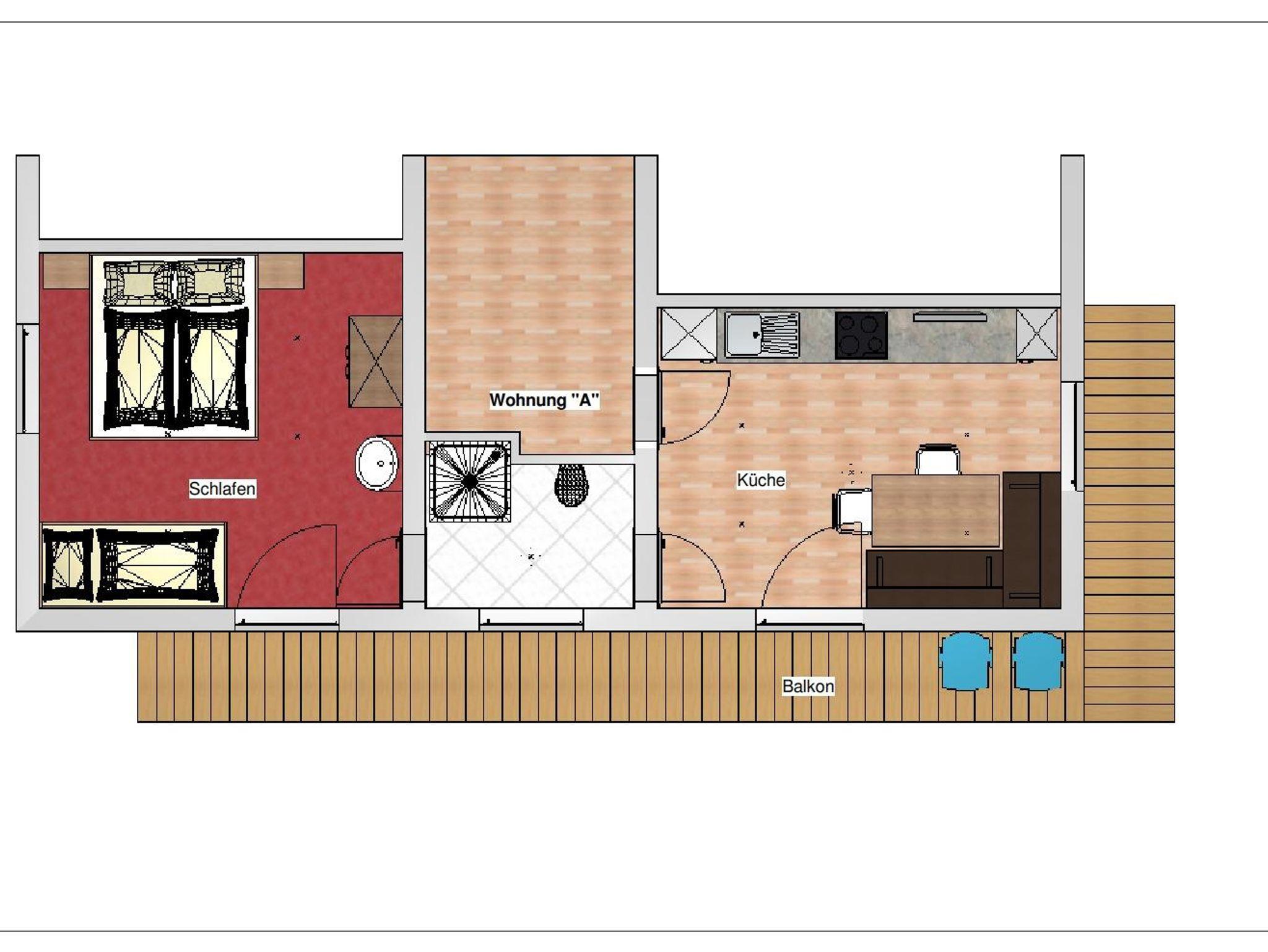 Wohnung A mit gratis W-Lan (Wifi) in der 1.Etage, bietet Platz für 2-4 Personen. Küche mit gemütlicher Eckbank, Flachbild TV. 1 Schlafzimmer mit Doppelbett und Etagenbett. Badezimmer mit Dusche/WC. Balkon.