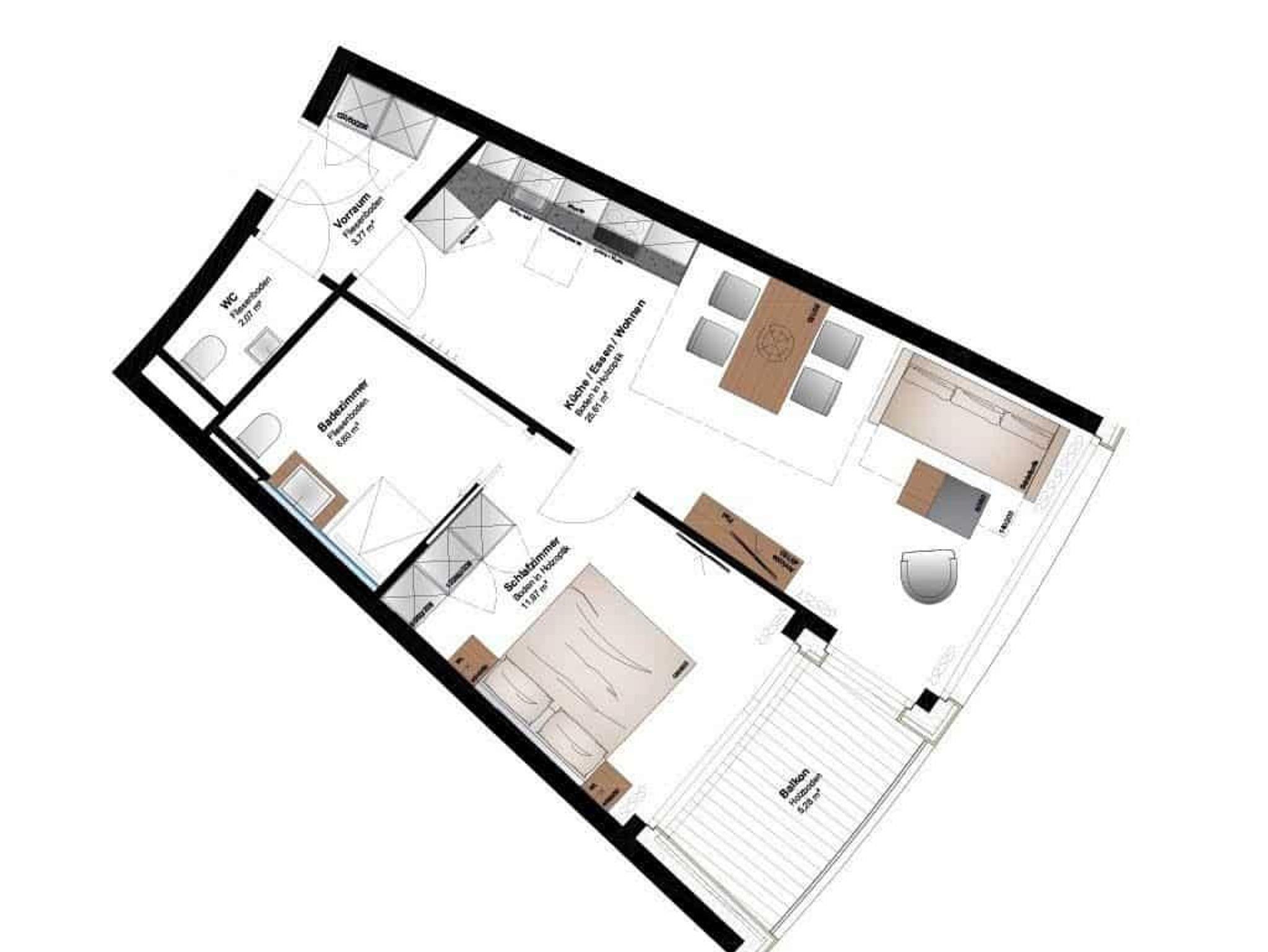 Standardbelegung 2 Personen, 2 zusätzliche Personen möglich (ausziebahre Couch im Wohnbereich)
