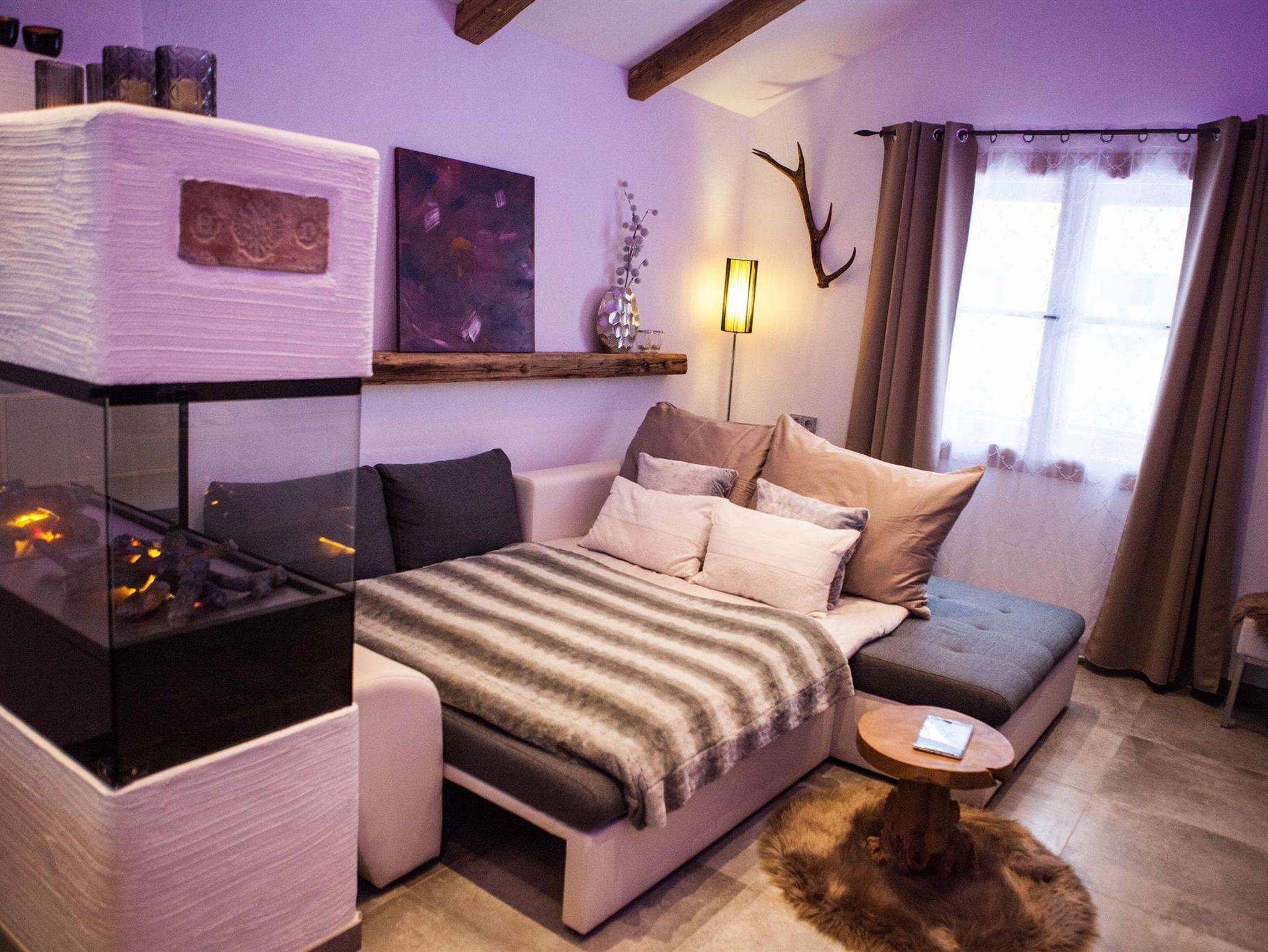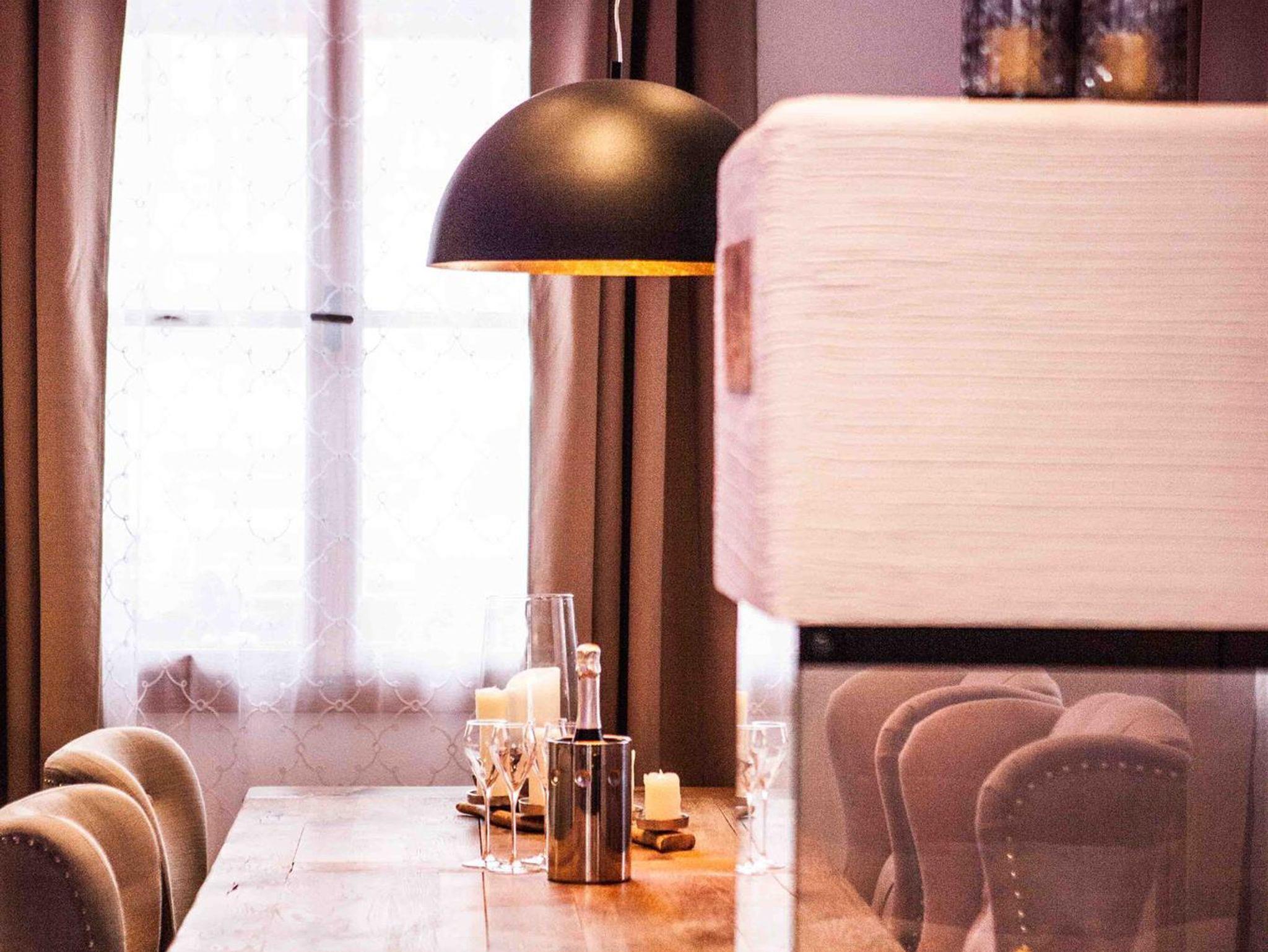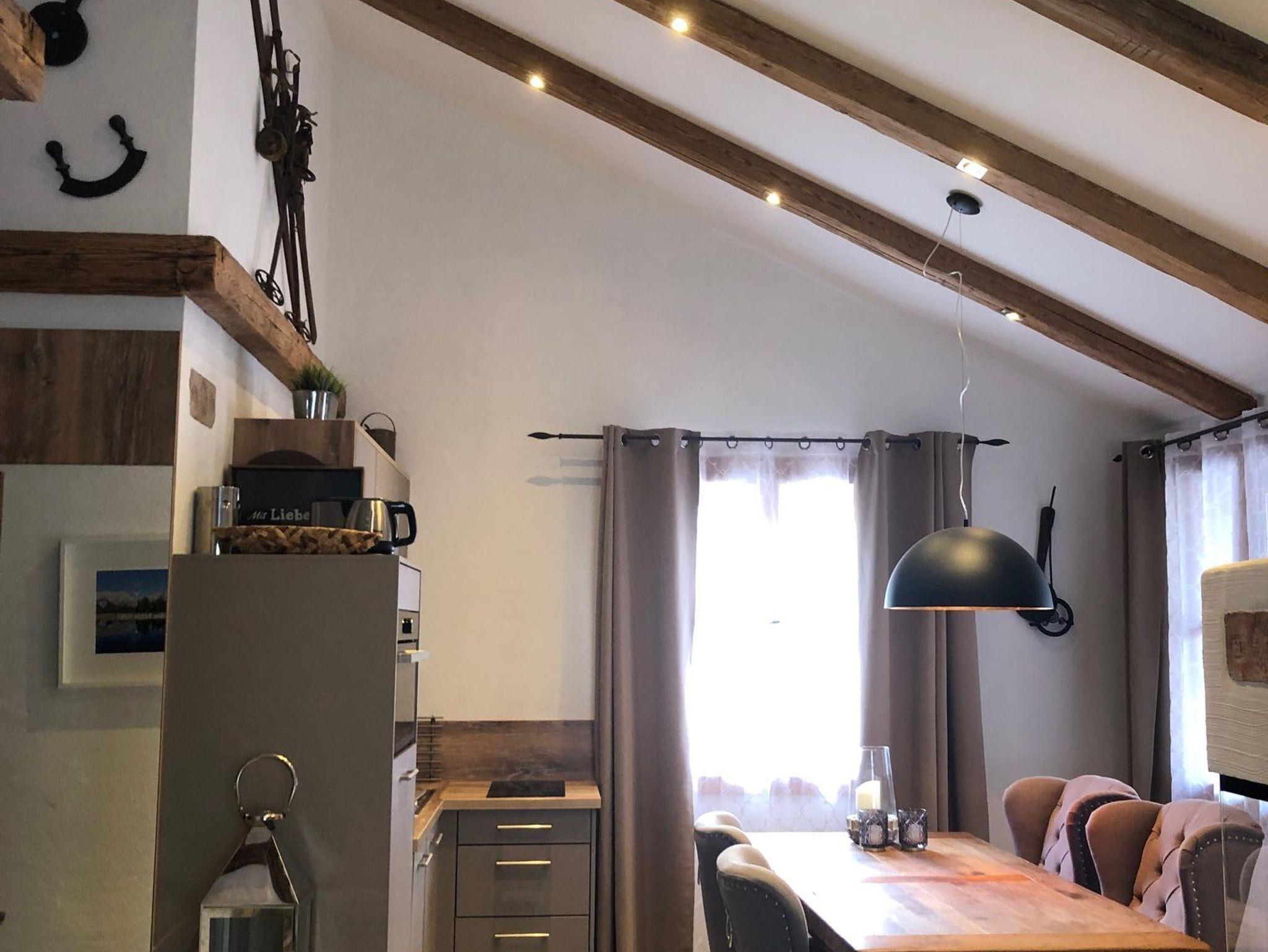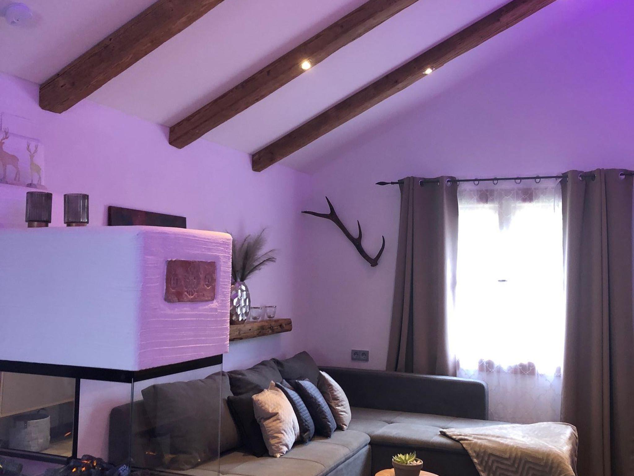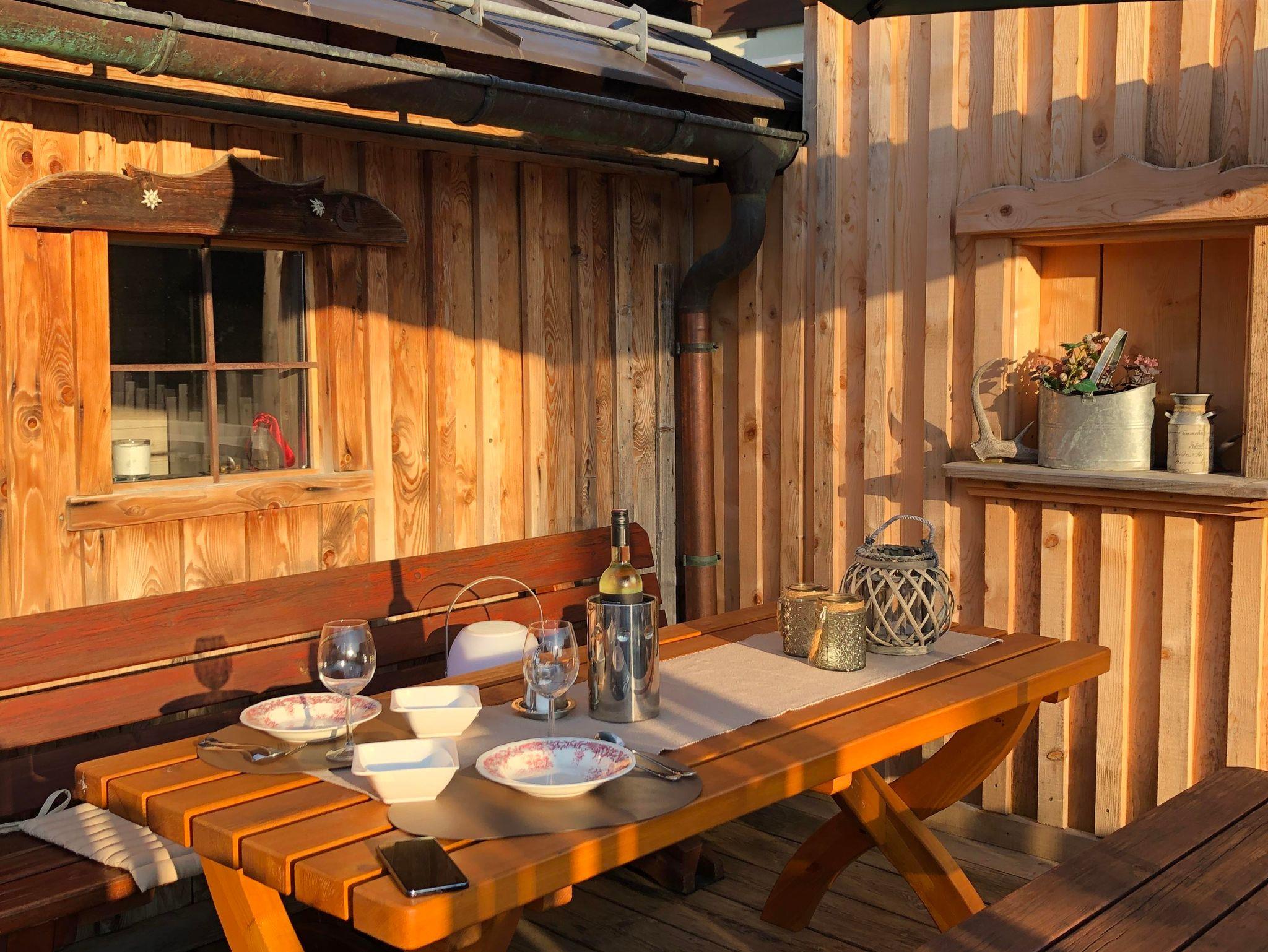 Der offene elektrische Kamin sorgt für romantische Stunden und unterstreicht das urige, stilvolle Ambiente zusätzlich. Die Infrarotkabine im Badezimmer sorgt für Entspannung, so wie Liegestühle und Sitzmöglichkeiten für die Sonnenterrasse. Genießen Sie das atemberaubende Panorama des Steinernen Meeres und den Blick auf den Hausberg Natrun mit der Natrunbahn.