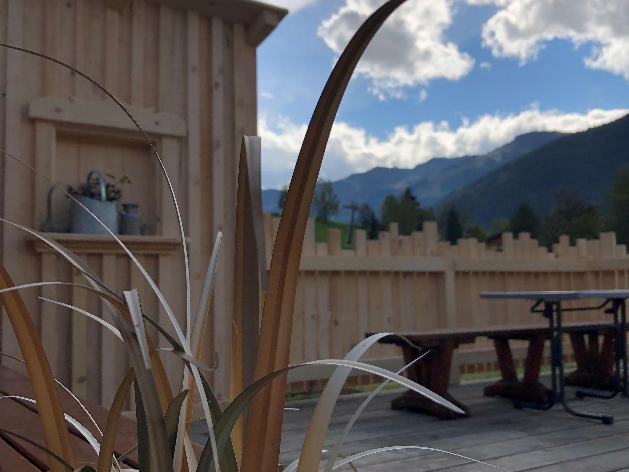 Ausstattung: Wohnküche mit Küchen-/Geschirrausstattung, bequemen Essbereich und großer Schlafcouch für 2 Personen, eigenes Schlafzimmer für 2 Personen, Bad mit WC und Dusche sowie Infrarotkabine zum Relaxen, Ski-/Radkeller und natürlich kostenloses Kabel-TV und WIFI sowie Sonnenterrasse inkl. Liegenstühlen und Sitzgelegenheiten.