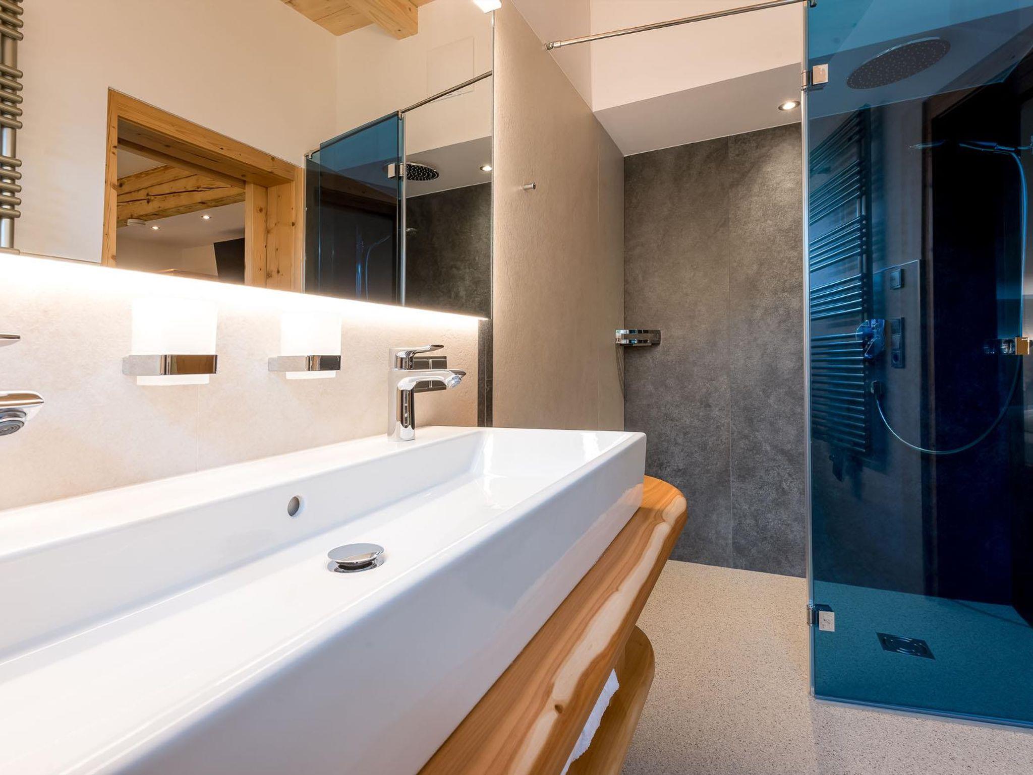 Mit heimischen Holz neueingerichtetes Zimmer mit Dusche/WC, Regenbrause, Haarföhn und Kabel-TV;