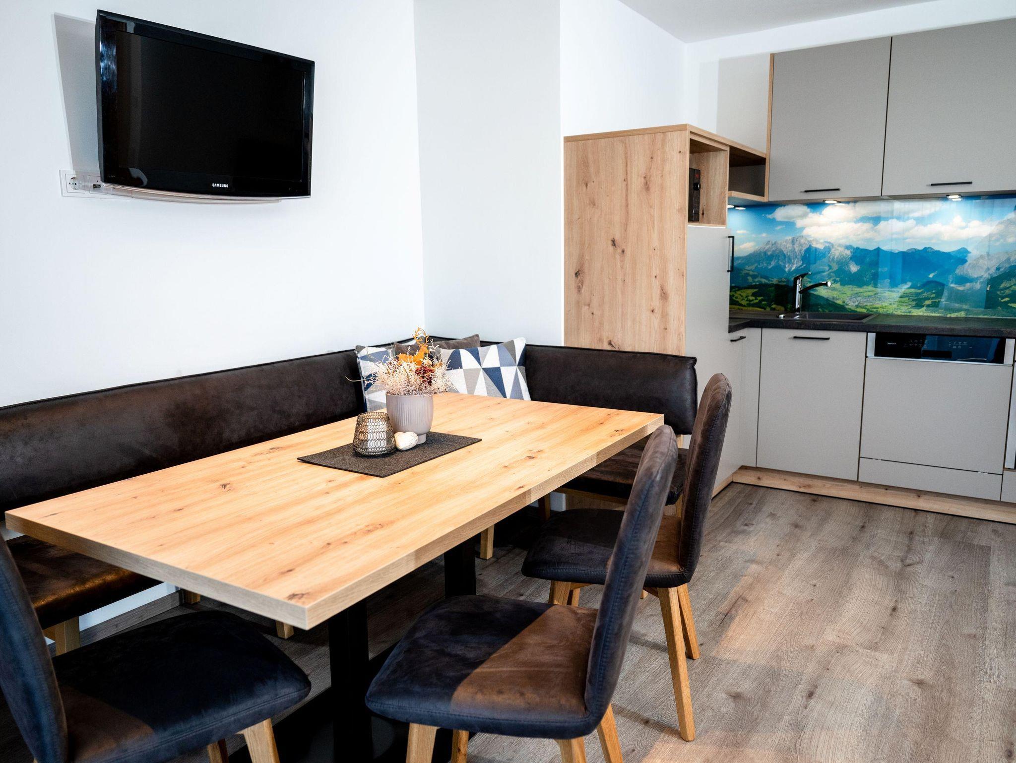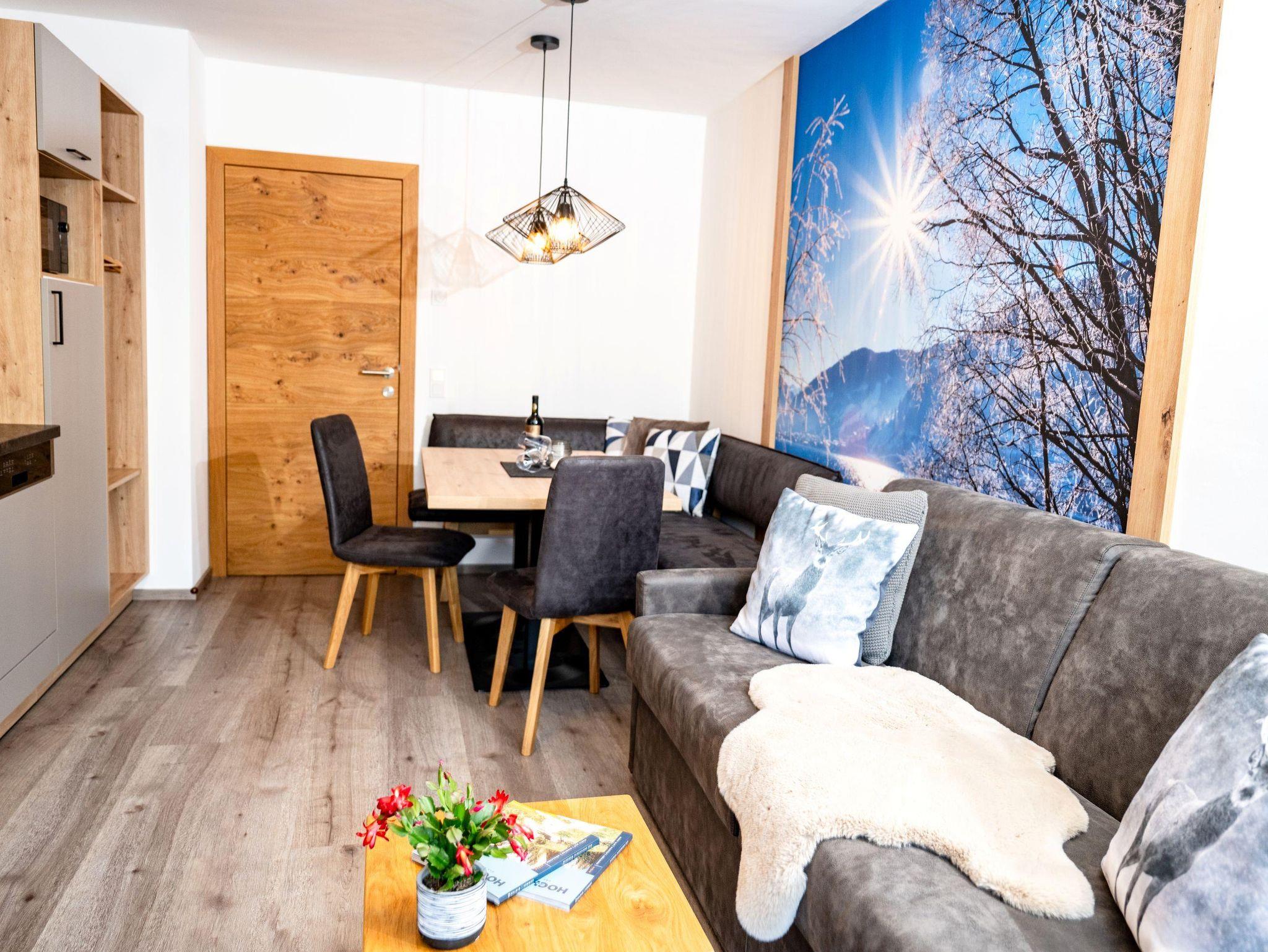 Unser stylisch eingerichtetes Appartement für 2 bis 6 Personen verfügt über zwei getrennte Schlafzimmer, in einem Schalfzimmer befindet sich ein Etagenbett mit hochwertigen Matratzen. Mit zwei getrennten Bädern ( Dusche/WC). Voll ausgestatteter Küche mit 4 Cerankochfeld, Backrohr, Mikrowelle, gratis W- Lan im ganzen Haus, Balkon. Bettwäsche, Handtücher und Geschirrtücher inkl. Haustiere nur im Sommer auf Anfrage gestattet. Auf Wunsch Brötchenservice möglich.