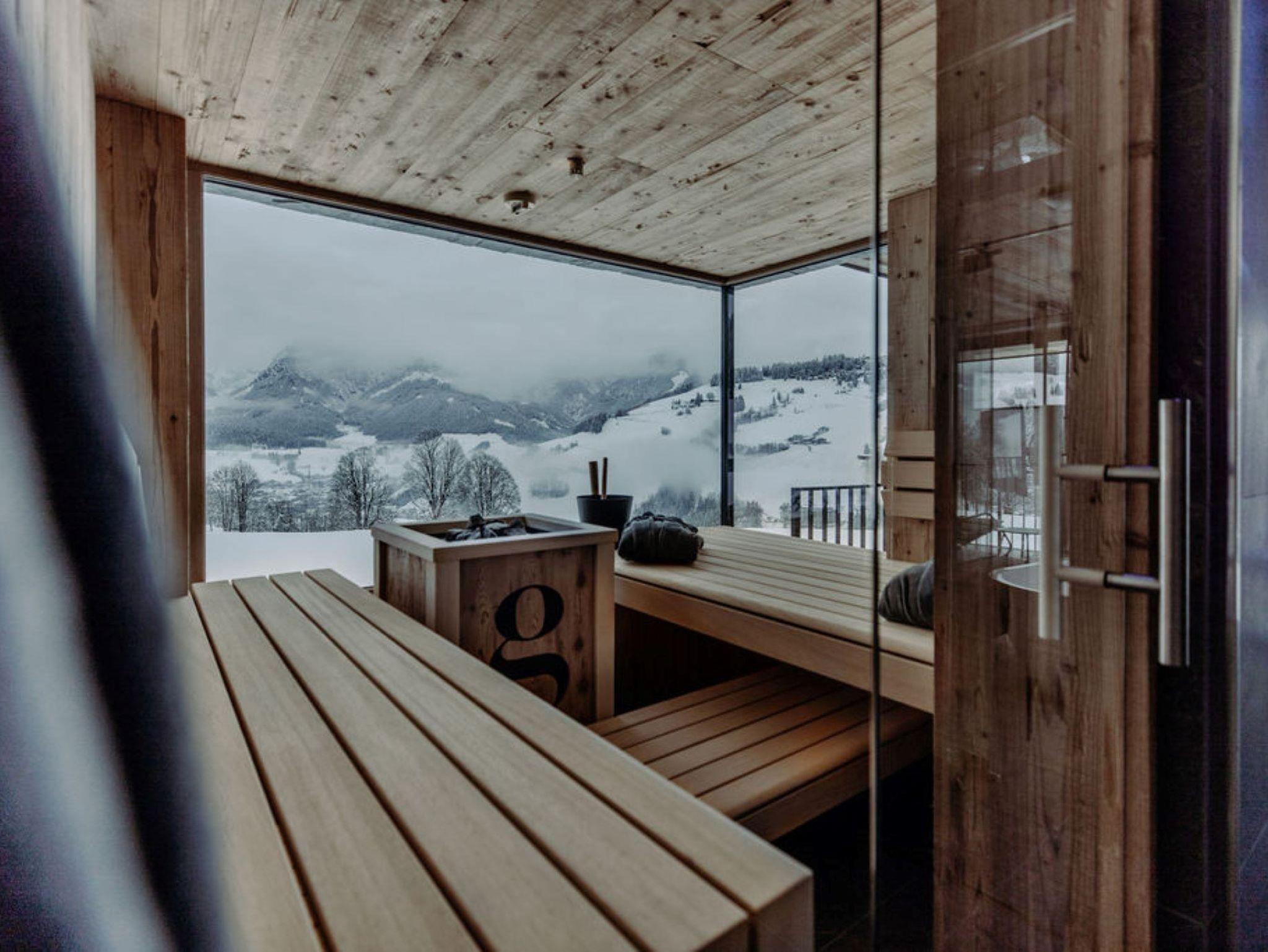 Genieße die Bergwelt der Hochkönigregion von der gemütlichen Panoramabadewanne aus oder entspanne nach einer anstrengenden Wanderung in der apartmenteigenen Sauna.