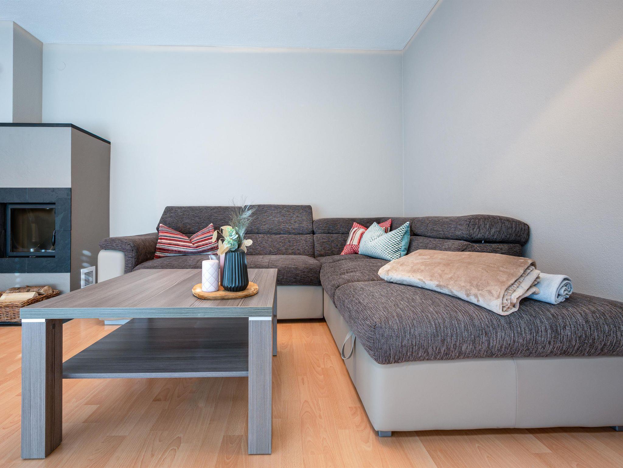Um Ihnen den Aufenthalt unvergesslich zu machen, haben wir unsere Wohnungen exklusiv/modern eingerichtet - zum Haus passend - im Wohnraum haben Sie eine über 4 Meter breite Glasfront aufs Dorf gerichtet - neben der Couch einen dänischen Kaminofen um romantische Stunden genießen zu können. Zudem eine sehr gut ausgestattete Küche mit Kühl/Gefrierschrank, Ceranfeld, Microwelle und Geschirrspüler. Beide Schlafzimmer sind geräumig mit großen Fenstern ausgestattet, das Badezimmer und Toilette natürlich getrennt. Schiraum befindet sich vorm Aufgang zum Haus - nahe zu den Autoabstellplätzen. Diese sind direkt am Haus.