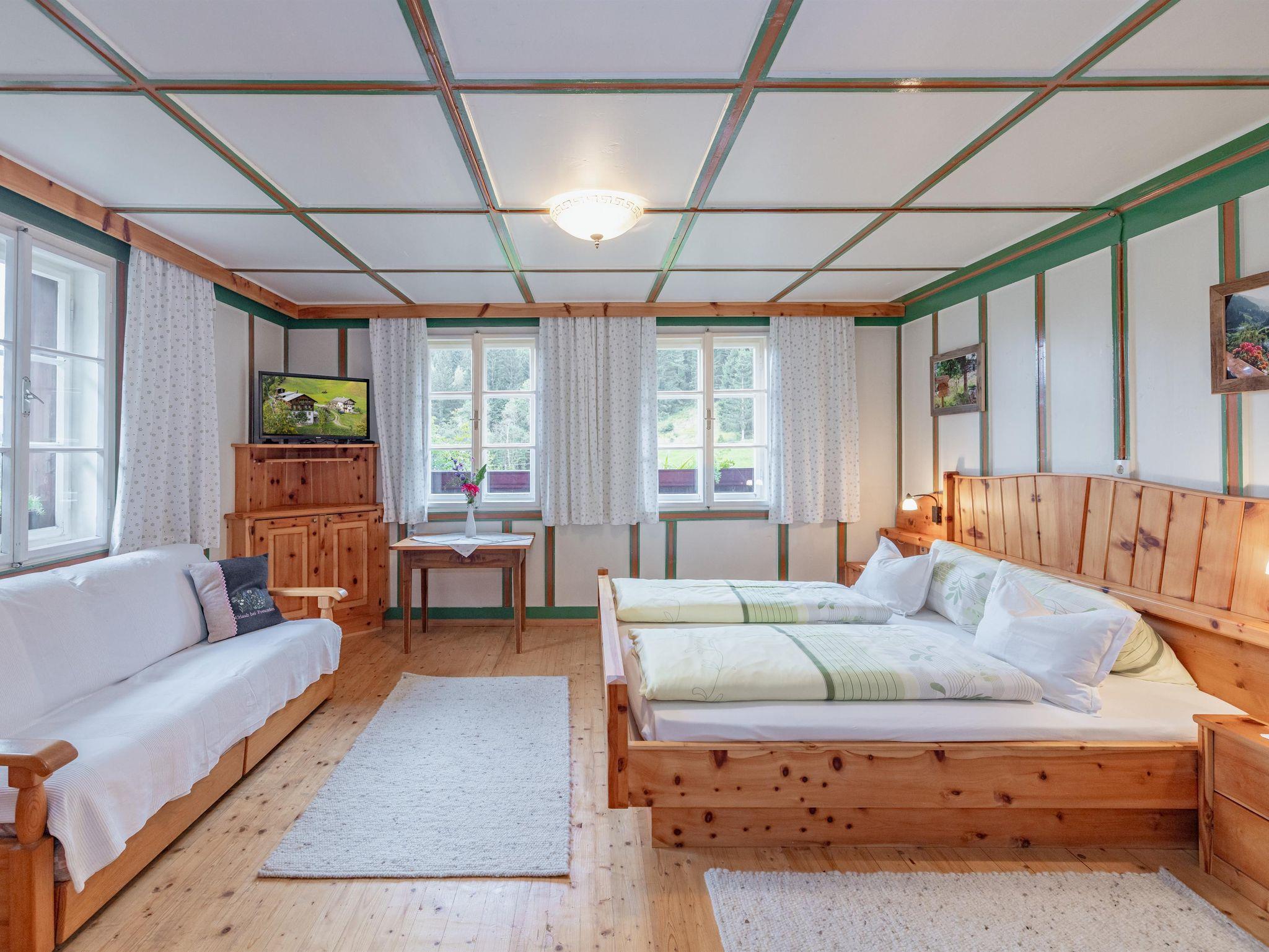 Als Familie wird diese Wohnung auch gern mit dem Doppelbettzimmer TIROL bezogen. Dieses Zimmer jedoch liegt separat im Obergeschoß und ist daher eher für ältere Kinder geeignet. Der Preis für Zimmer Tirol ist im Ferienwohnungenpreis nicht mit inbegriffen.