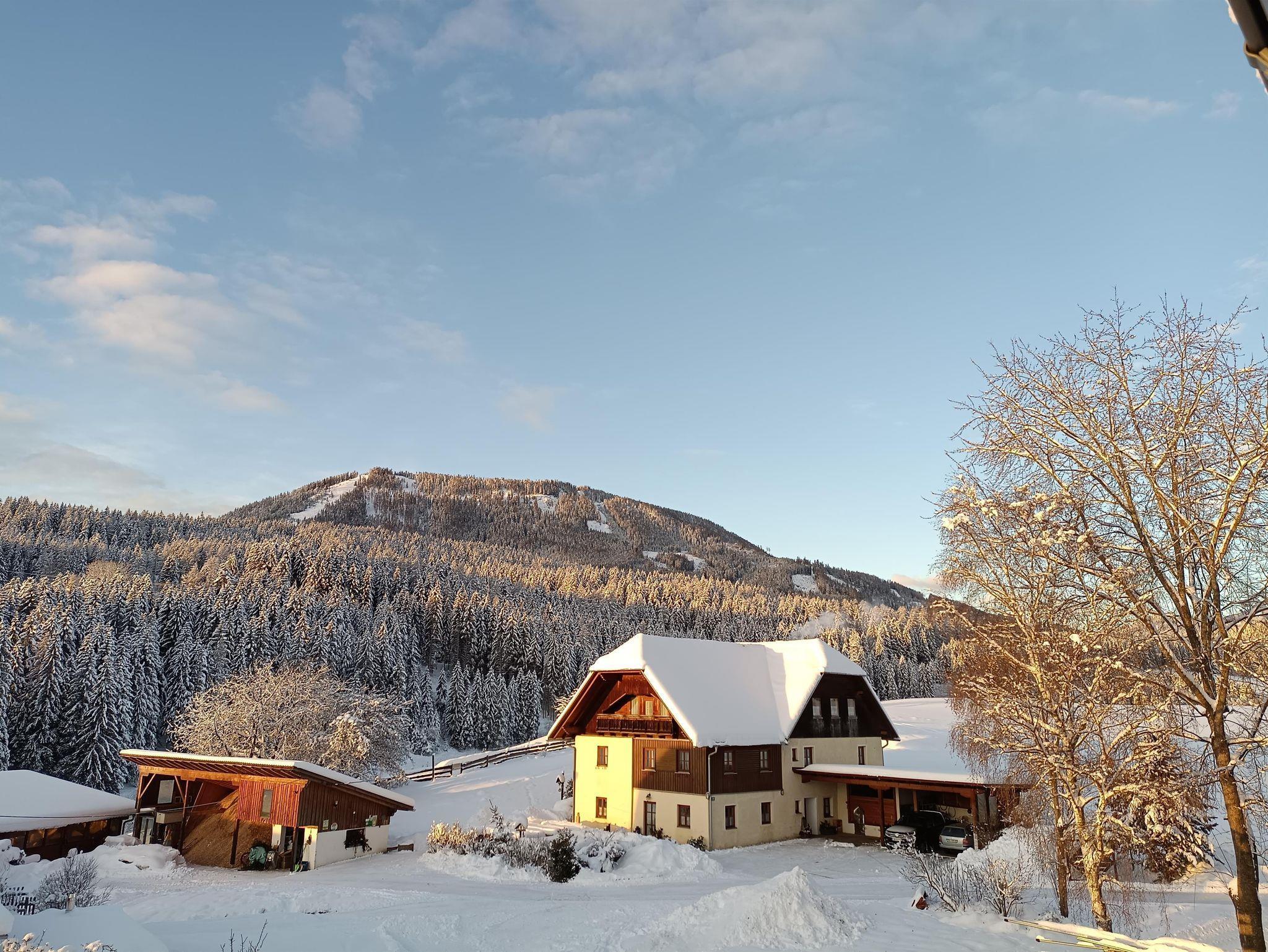 Unser Biobauernof liegt in 950 m Seehöhe in ruhiger Lage. Große, geräumige Wohnungen mit Wintergarten oder Balkon bieten genügend Platz für Ihren Urlaub um durch Wiesen oder Wälder zu wandern, Beeren und Pilze zu sammeln, oder nach einem schönen Schitag in unserer Sauna sich so richtig zu entspannen. Für Ihr Frühstück oder eine Jause können Sie Produkte aus unserer biologischen Landwirtschaft wie: Vollkornbrot, Marmelade, Frischkäse, Speck, Milch, Most, Apfelsaft oder Johannisbeer-Himbeersaft genießen. Markierte Rad- und Wanderwege führen direkt am Hof vorbei. Während Sie auf den Grillabend warten oder selbst grillen, können sich die Kinder am Kinderspielplatz, Volleyball, Tischtennis oder Trampolin mit Sicherheitsnetz vergnügen.