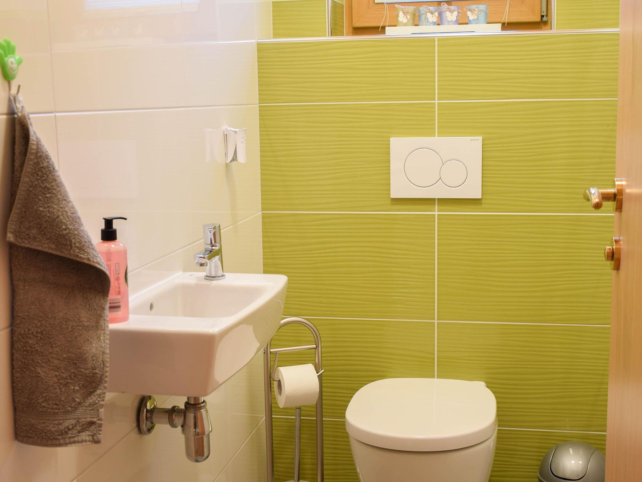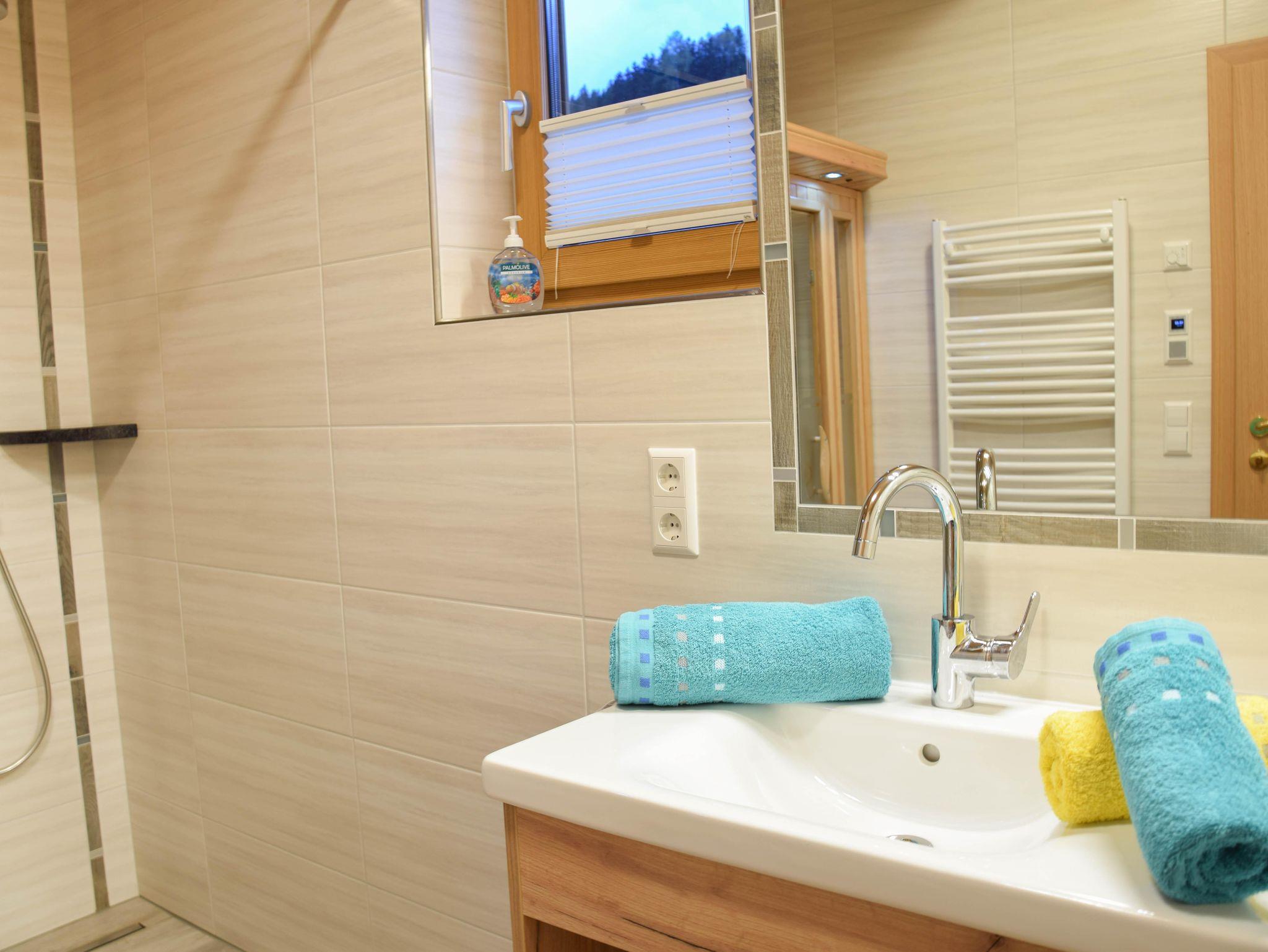2 Badezimmer; das Bad im Erdgeschoß verfügt über eine Infrarotsauna. Jenes im OG zusätzlich eine Badewanne