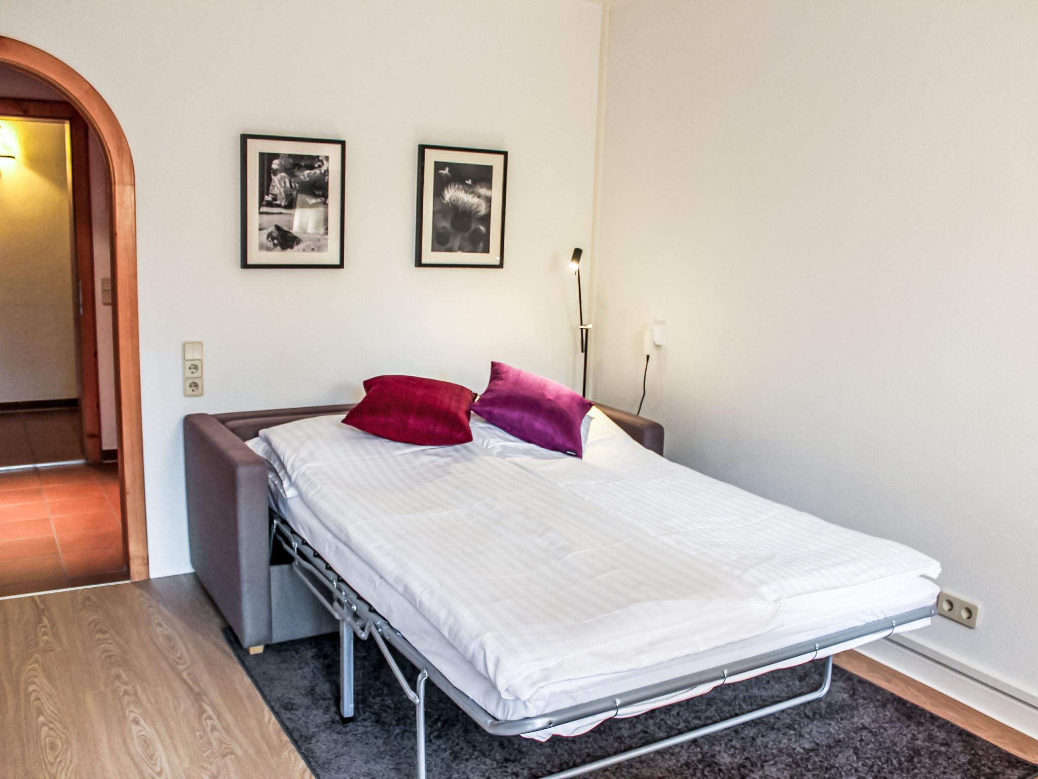 "Wellnessapartment", 4-room apartment 90 m2. Comfortable and wooden furniture furnishings: 1 double bedroom. 2 small rooms, each room with 1 x 2 bunk beds. Living/sleeping room with 1 double sofabed, open-hearth fireplace and satellite TV. Kitchen). Bathroom, sep. WC. Balcony. Very beautiful panoramic view. Facilities: washing machine. Internet (WiFi). Please note: maximum 1 pet/ dog allowed. Smoke alarm. The two small rooms are separated by flexible room divider. The apartment has its own sauna. Holiday apartment is located in the main house.