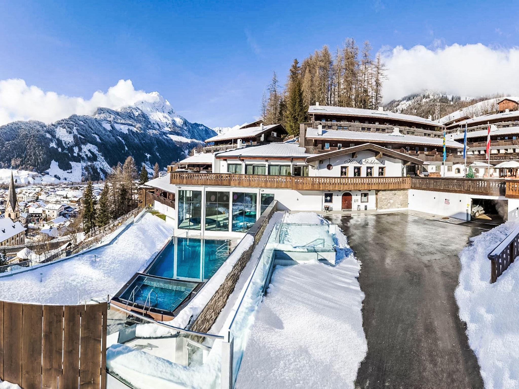 One of the most beautifully situated hotels in the Alps. The hotel offers a new wellness area and outdoor pool (summer only). The swimming area is free for all hotel guests. Sauna and wellness area: €15 per person (17 years and older) per visit. Parking is approximately 200m from the main building. Aparthotel "Goldried Park", 1'000 m a.s.l., surrounded by trees. Above Matrei in Osttirol, on a slope, 1 km from the skiing area. For shared use: lawn for sunbathing, swimming pool (seasonal availability: 01.Jun. and 30.Sep.). Children's playground. In the complex: reception, restaurant, bar, WiFi, sauna (extra). Spa area (extra), billiard table, playroom, lift, central heating system, washing machine. Breakfast and half board possible on request. Motor access to the house. Communal covered parking. Shop 850 m, supermarket 1 km, restaurant, café 200 m, bus stop "Matrei in Osttirol Mittelschule" 900 m. Gondola lift 1 km, skisport facilities 1 km. Hiking paths: Nationalpark Hohe Tauern. Partially accessible by elevator! Half board: €14.50 per child (2-5 years) per day / breakfast: €8 per child (2-5 years) per day.