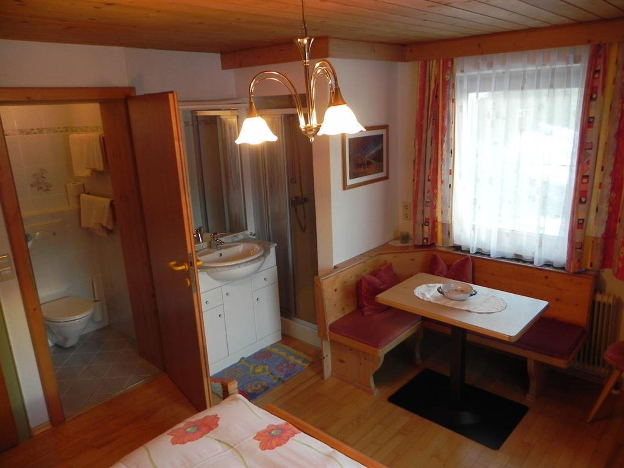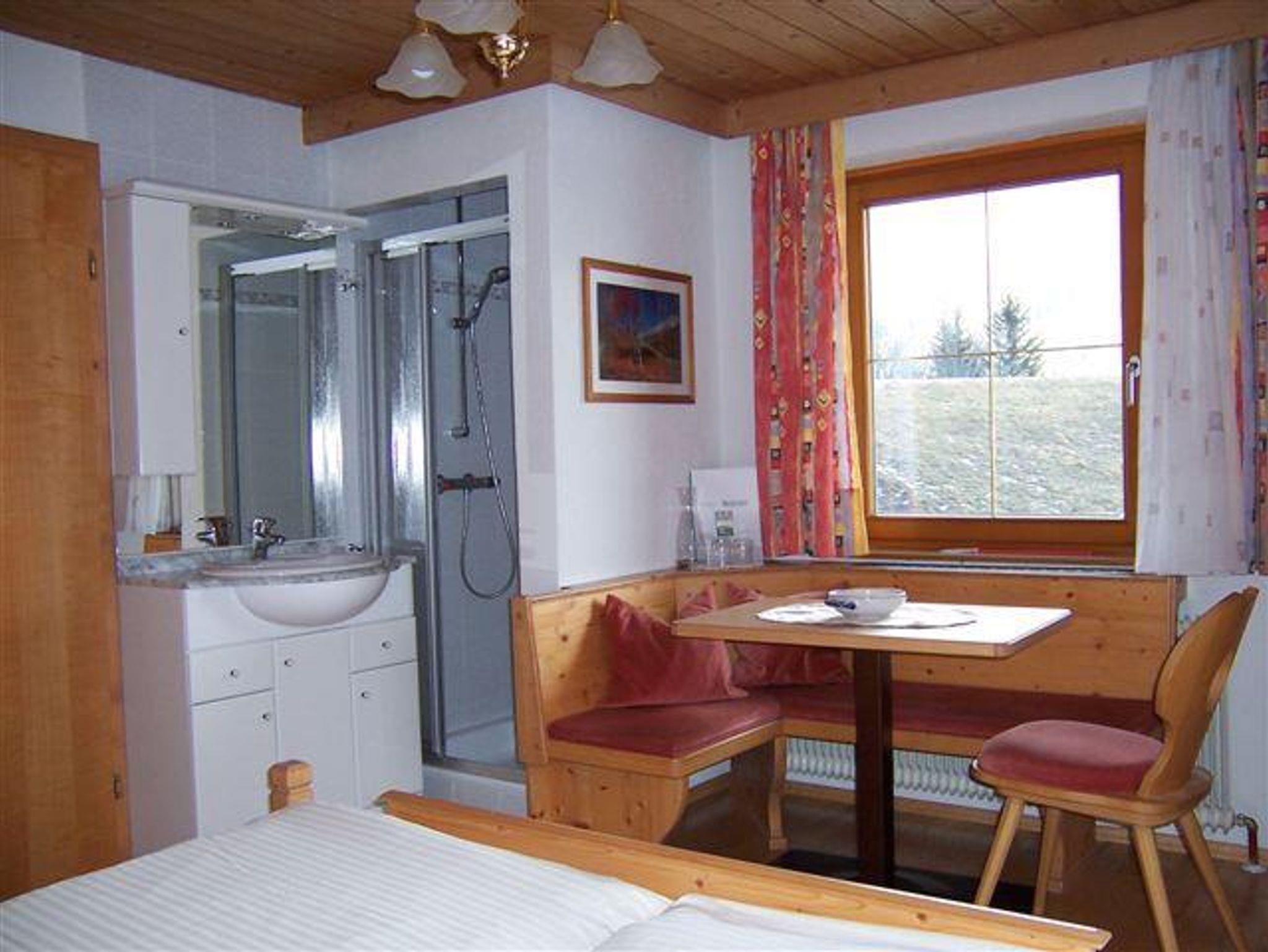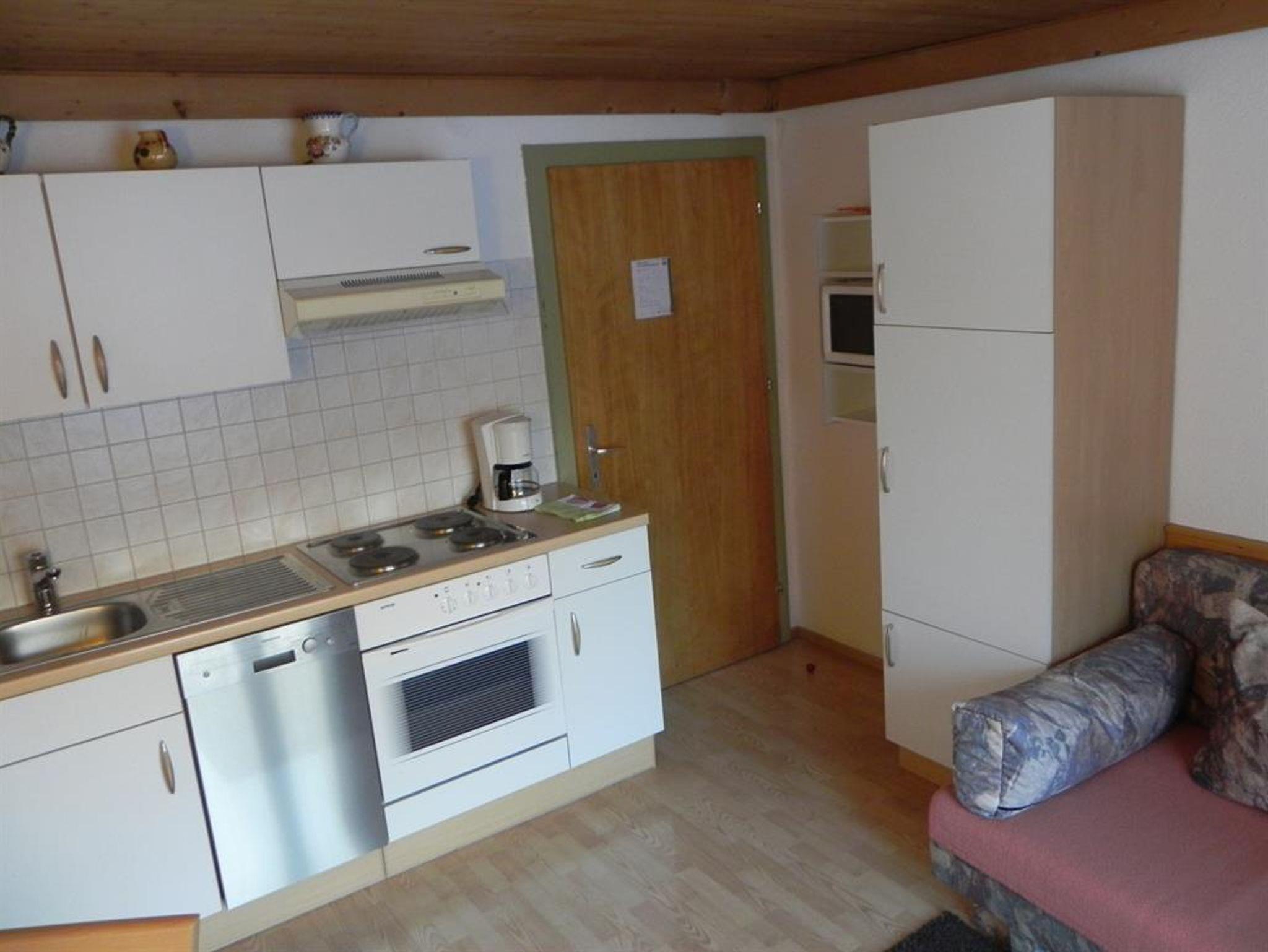 Ferienwohnung für 2 - 5 Personen: ausgestattet mit Wohnküche inkl. ausziehbarer Couch (Küchenzeile mit Backofen und Mikrowelle), gemütliche Sitzecke, Sat-TV, südseitigen Balkon, Garderobe; Doppelzimmer jeweils mit Dusche und WC, Sat- TV; Einbettzimmer mit eigener Toilette und Dusche, Sat-TV