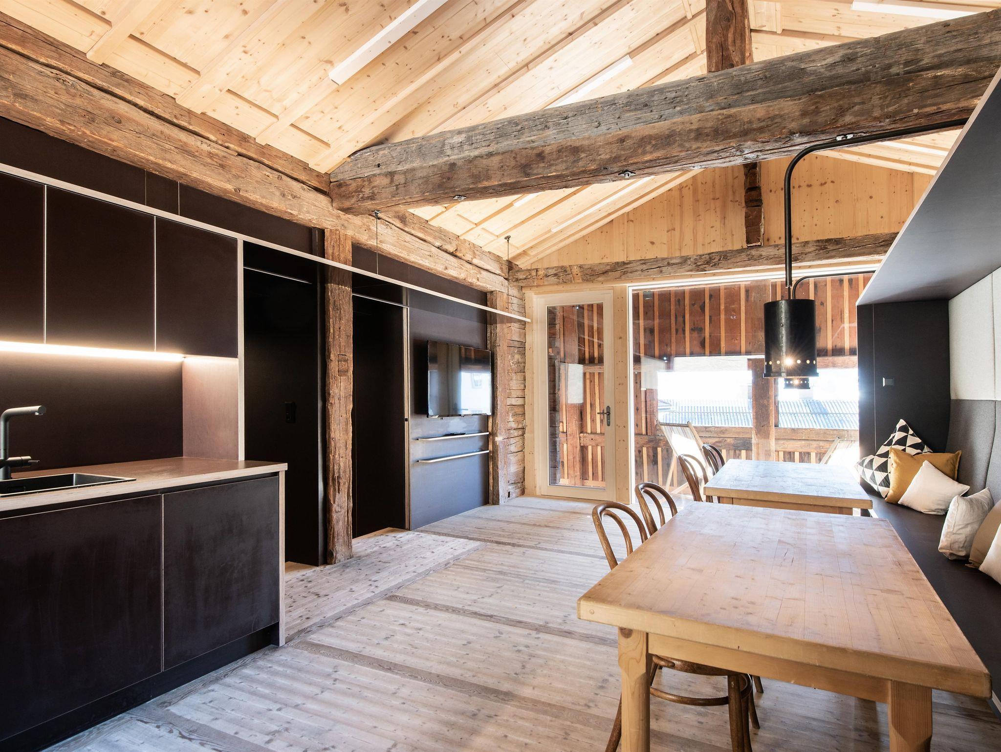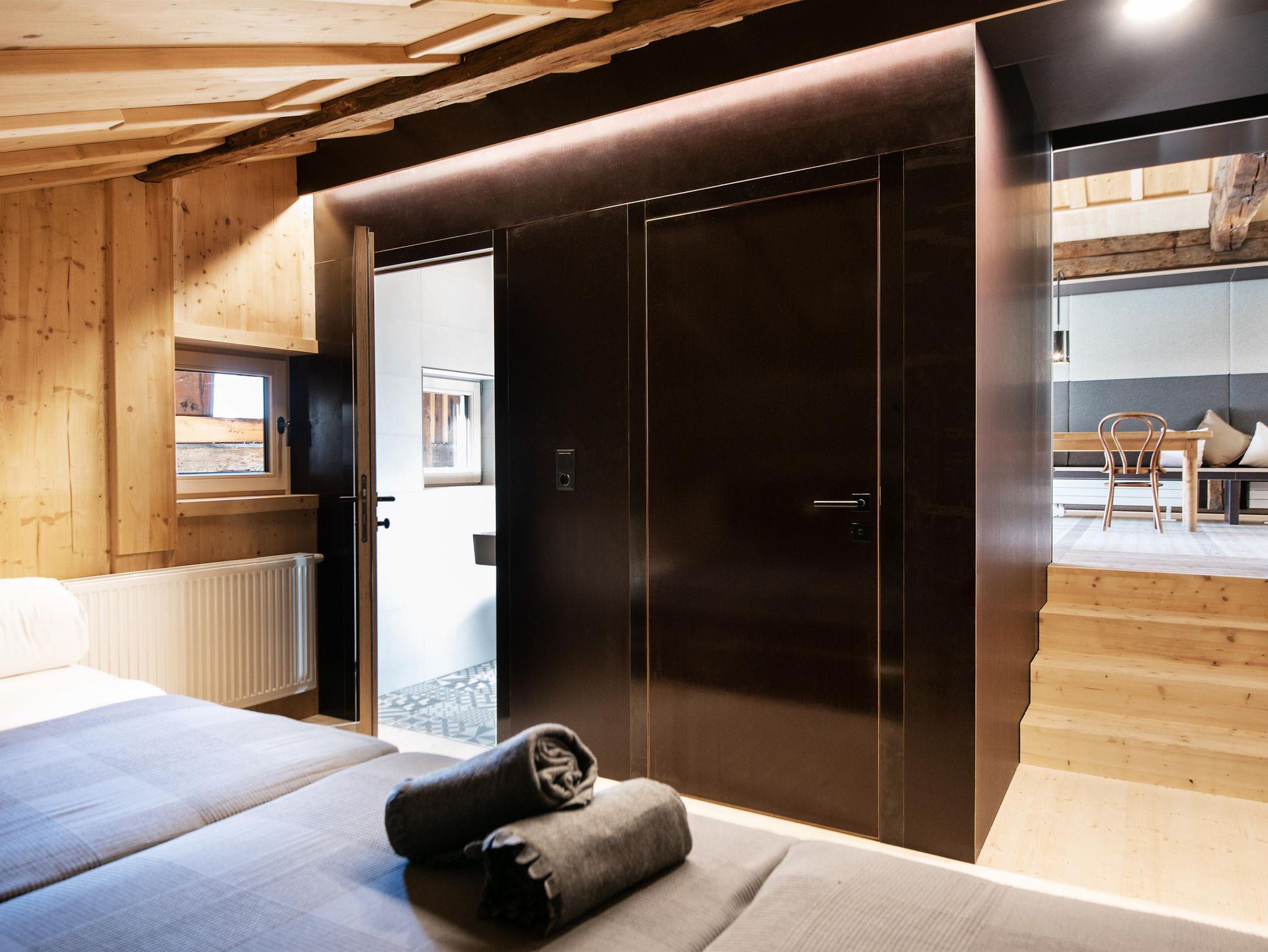 Ausgezeichnet mit 4sEdelweiß, architektonisch einzigartig, komfortabel, für 10 Pers. (7 bzw. 3 Pers. in 2 Appartements) BergsteigerSEIN (SEIN im Dialekt=eine Bleibe haben) SauWOHL (ehem. Schweinestall)