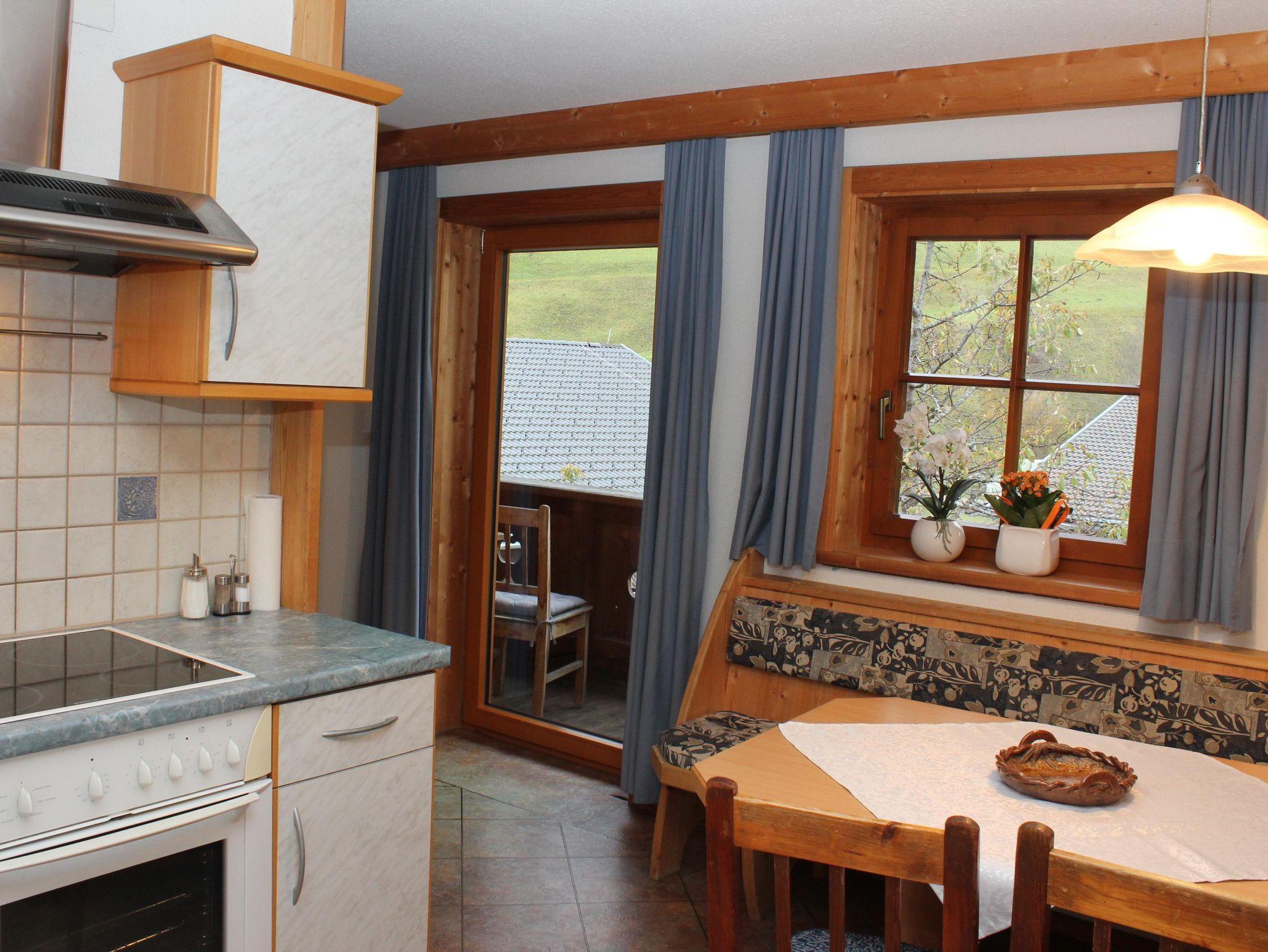 Ferienwohnung mit herrlichem Blick auf den großen Zunig. Ferienwohnungs-Ausstattung: Wohnküche mit kleiner Küchenzeile, Mikrowelle, Elektroherd und Backofen,usw. Gemütliche Sitzecke mit Sat TV, Doppelzimmer, Kinderzimmer, Dusche/WC, und Balkon