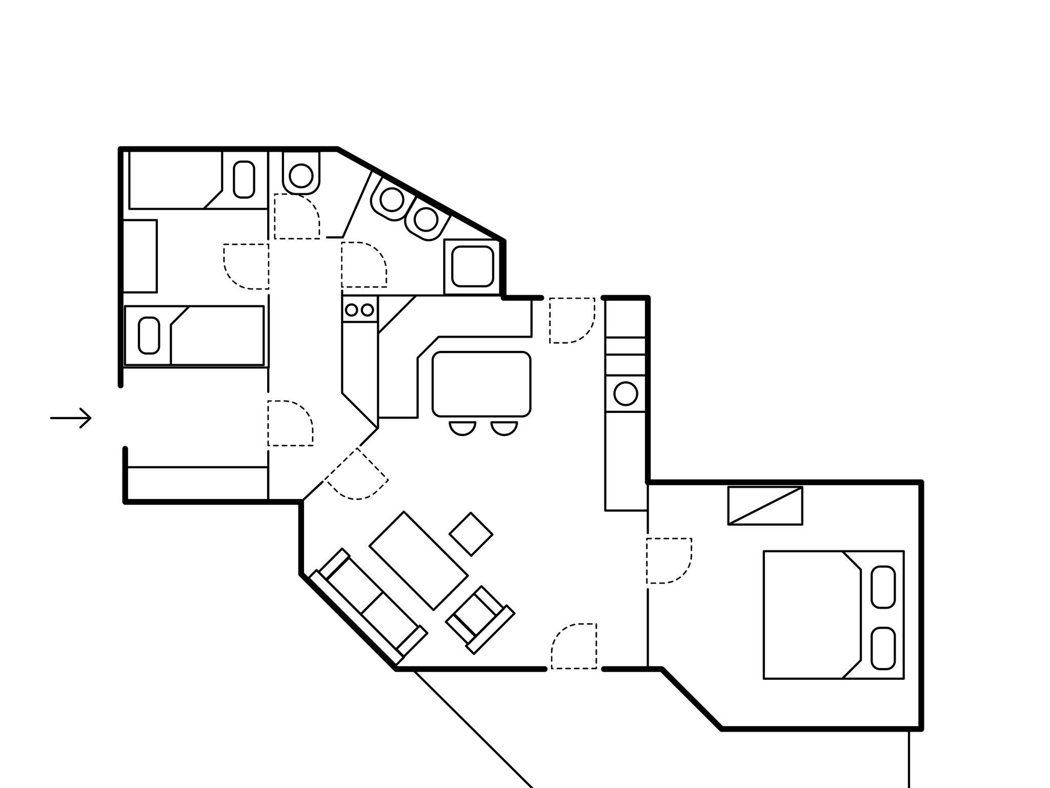 Wohnküche, 2 Schlafzimmern, Dusche, WC, Sat-TV, WLAN, Parkplatz.