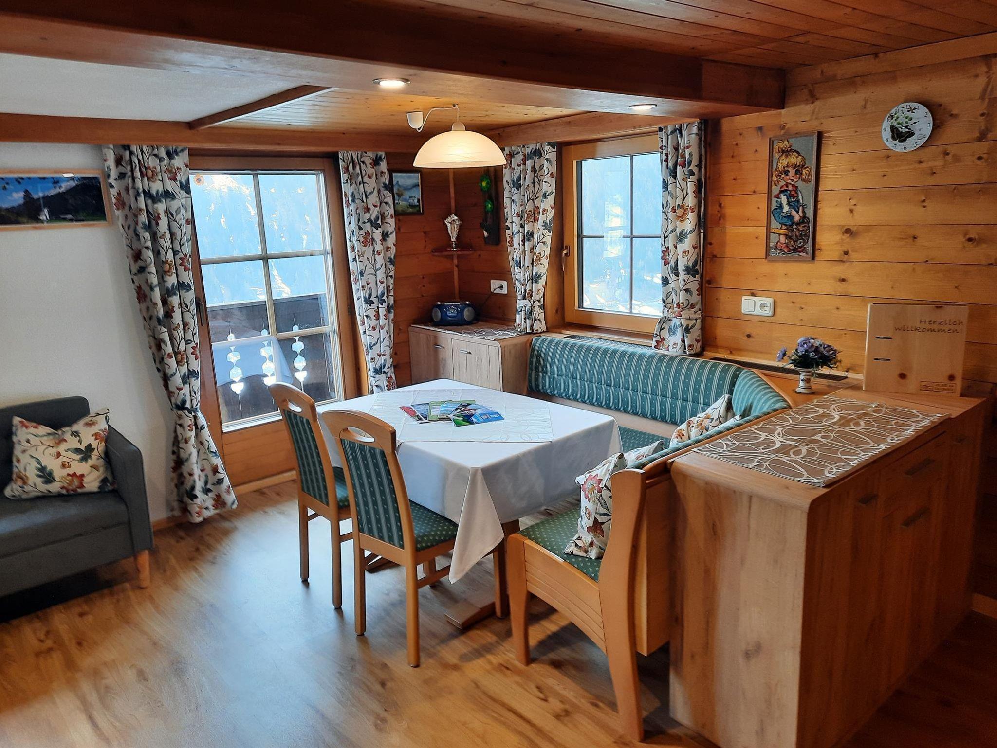 Gemütliche teilweise aus natürlichen Materialien angefertigte Ferienwohnung, mit herrlichem Ausblick vom Balkon, auf die wunderbare Bergwelt und dem schöngelegenen Ort Matrei.