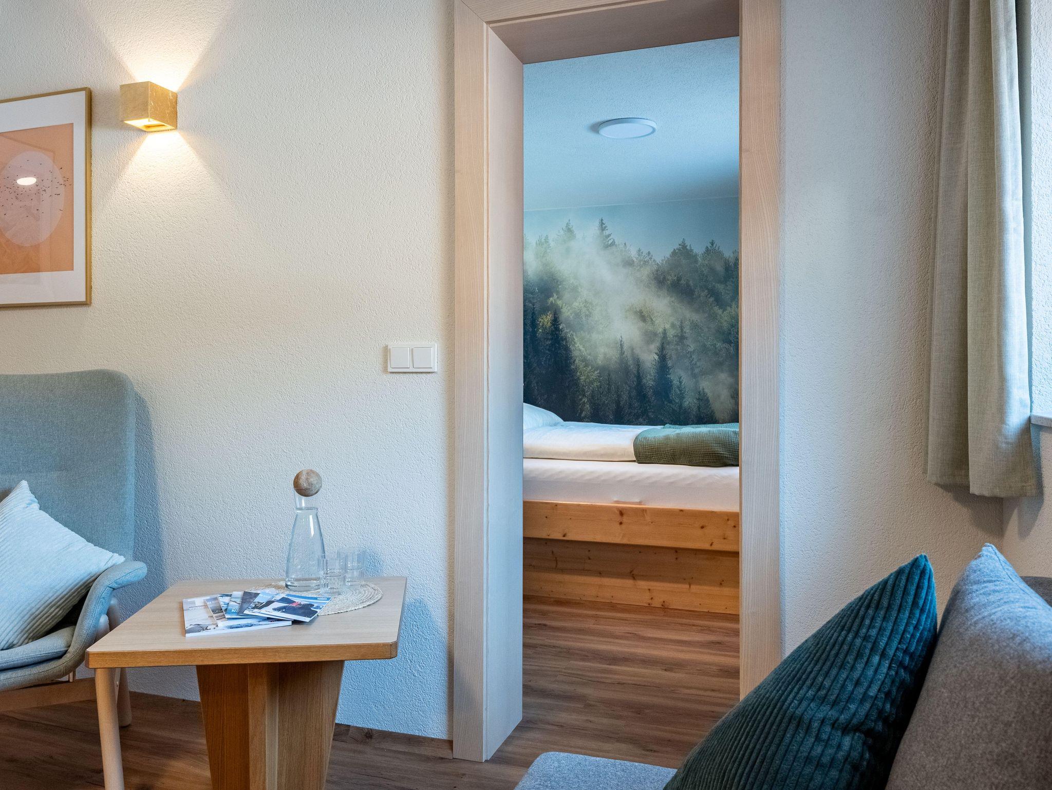 Genießen Sie nach einem ereignisreichen Tag in der Region Achensee entspannte Abende vor dem TV oder die besondere Atmosphäre hochwertiger Materialien aus Stein und Holz. Das gemütliche Doppelzimmer bietet einen traumhaften Blick auf die Berge und die angrenzende Wiese.