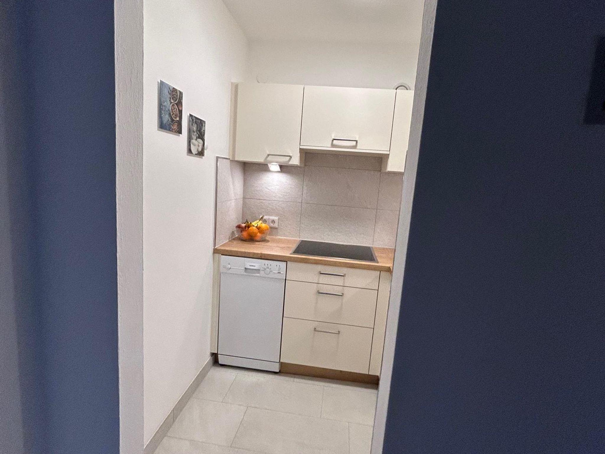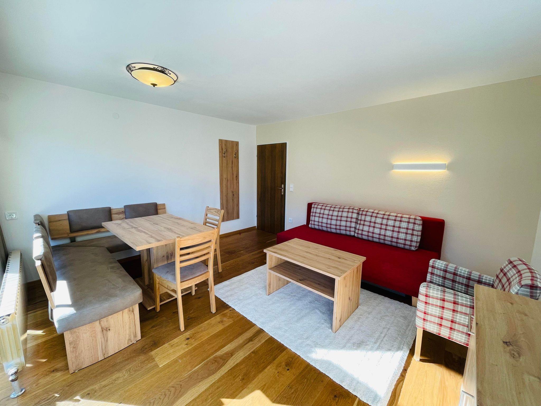 Wohnschlafzimmer mit zwei Couches und Tischchen, gepolsterter Eßecke und Bauernkomode. Dreibettzimmer mit 2 Fauteuils und Tischchen, Wandvertäfelung. Große Schiebetüre zum Liegebalkon bzw. zur Gartenterasse. Vorraum mit Schrank. Frisch renoviertes Badezimmer mit Dusche, Waschbecken, WC und Heizstrahler. Separate Küche mit 3-Platten-Herd, Kühlschrank, Geschirrspülmaschine, Mikrowellenherd, Dunstabzug, kompl. Geschirr, Kaffeemaschine. Farb-TV, Safe, Internetanschluss. Haustiere sind nicht erlaubt!