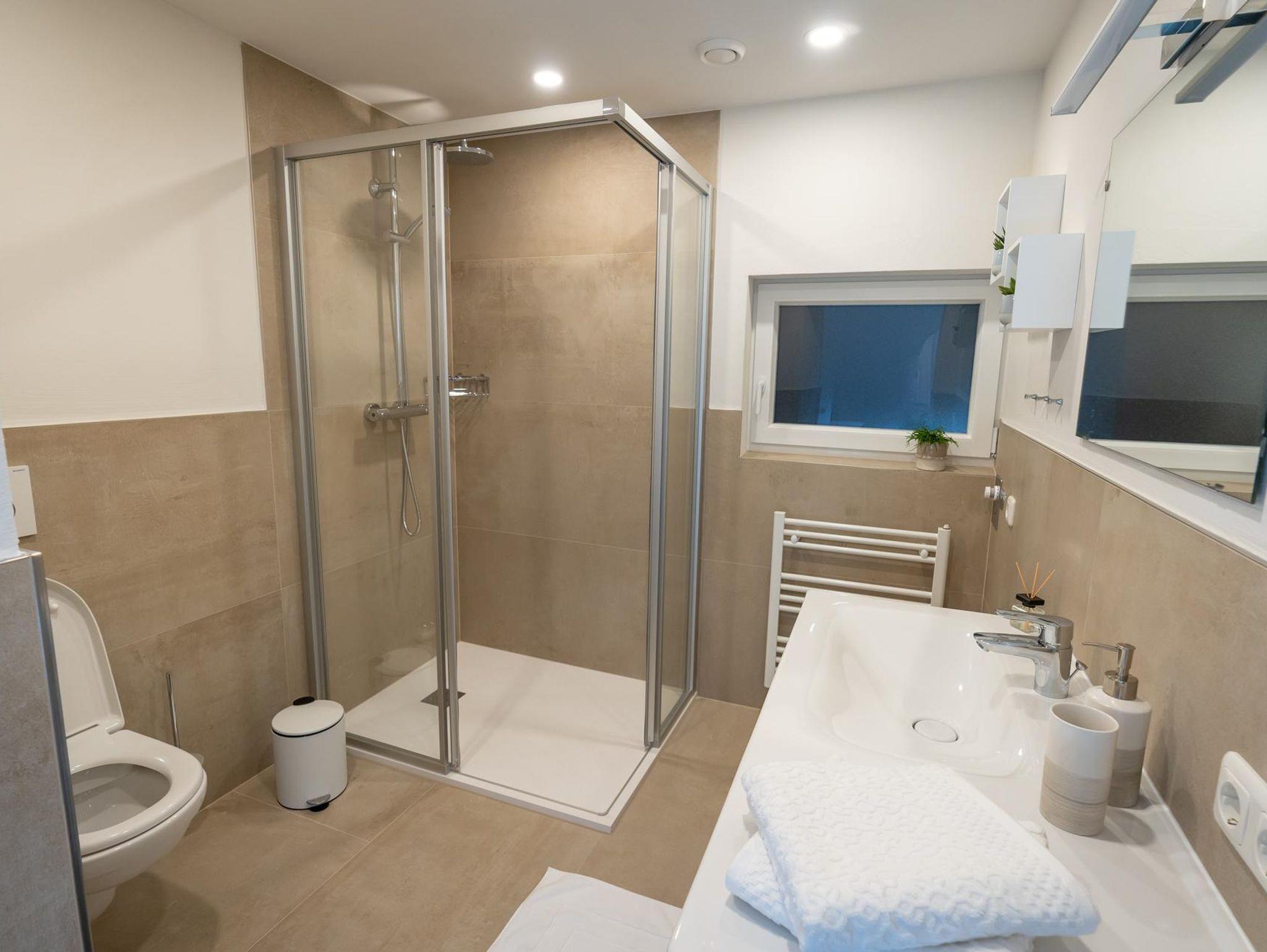 • voll eingerichtetes, neues Badezimmer (großzügige Dusche, WC, Waschtisch)