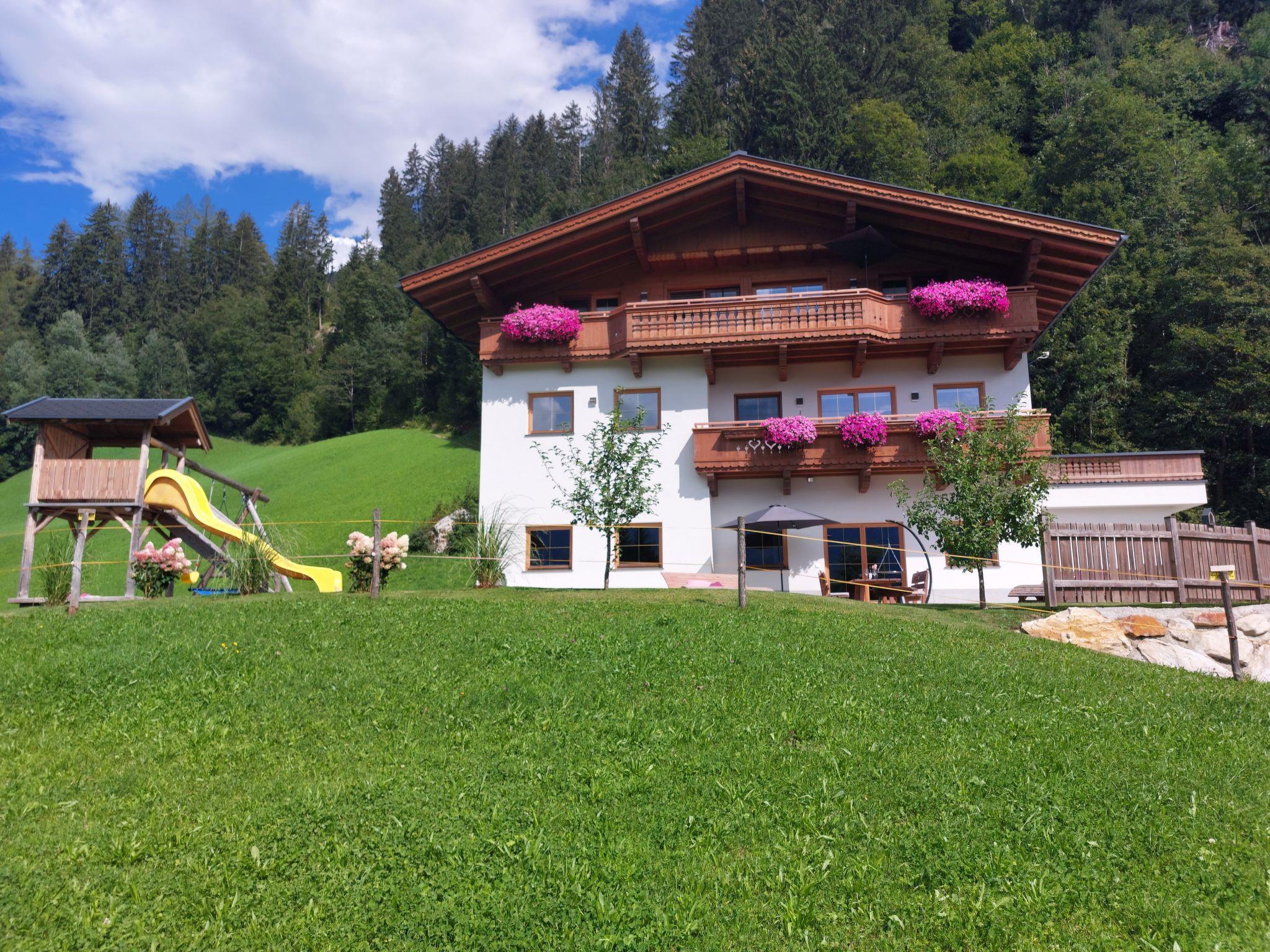 Ramsau: The landlord lives in the same house, barbecue, garden and playground are only available for shared use. Washing machine can be used for a fee of 5 euros per wash. 2-family house "Hocheben", 1'000 m a.s.l., 3 storeys, detached, surrounded by meadows. In the district of Ramsberg 4 km from the centre of Mayrhofen, 2 km from the centre of Ramsau, in a quiet, sunny position on a slope, 4.5 km from the skiing area. For shared use: patio, garden furniture, barbecue, children's playground. In the house: central heating system, ski boot dryer. Available: sledges for children (7). Motor access (mountain road). In Winter: please take snow chains. Parking at the house. Supermarket 3 km, restaurant 3 km, bus stop "Bichl Bahnhaltestelle" 2.8 km, railway station "Bichl Bahnhaltestelle" 2.8 km. Skisport facilities 4.5 km, ski rental 4.5 km. Well-known ski regions can easily be reached: Horbach/Penken 4.5 km, Zillertal Arena, Ahornbahn. Hiking paths: Wallfahrtskirch Maria Rast, Ahorn. The owner does not accept any youth groups. Please note: the owner lives in the same residence.