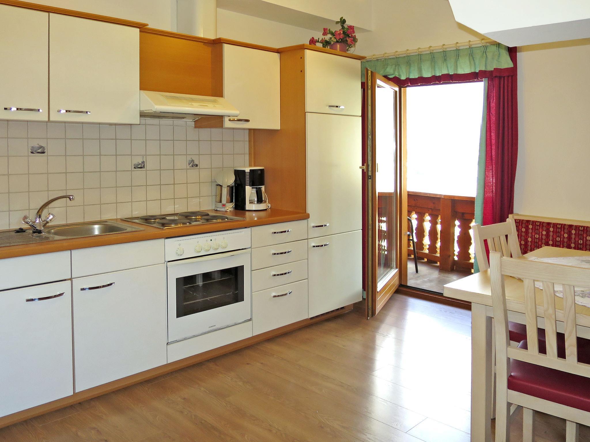 "Heisenhaus", 4-room apartment 65 m2 on 2nd floor. Practical and rustic furnishings: 1 room with 1 double bed. Exit to the balcony. 1 room with 1 x 2 bunk beds. Exit to the balcony. 1 room with 1 double bed, shower/WC and satellite TV (flat screen). Exit to the balcony. Kitchen-/living room (oven, 4 ceramic glass hob hotplates, kettle, electric coffee machine) with dining nook and satellite TV (flat screen). Exit to the balcony. Shower/WC. Heating. Facilities: baby cot. Internet (WiFi, extra). Please note: one double bedroom is outside the apartment. Smoke alarm. When there are less than the maximum number of guests staying at the property, not all of the housing units will be available for use.
