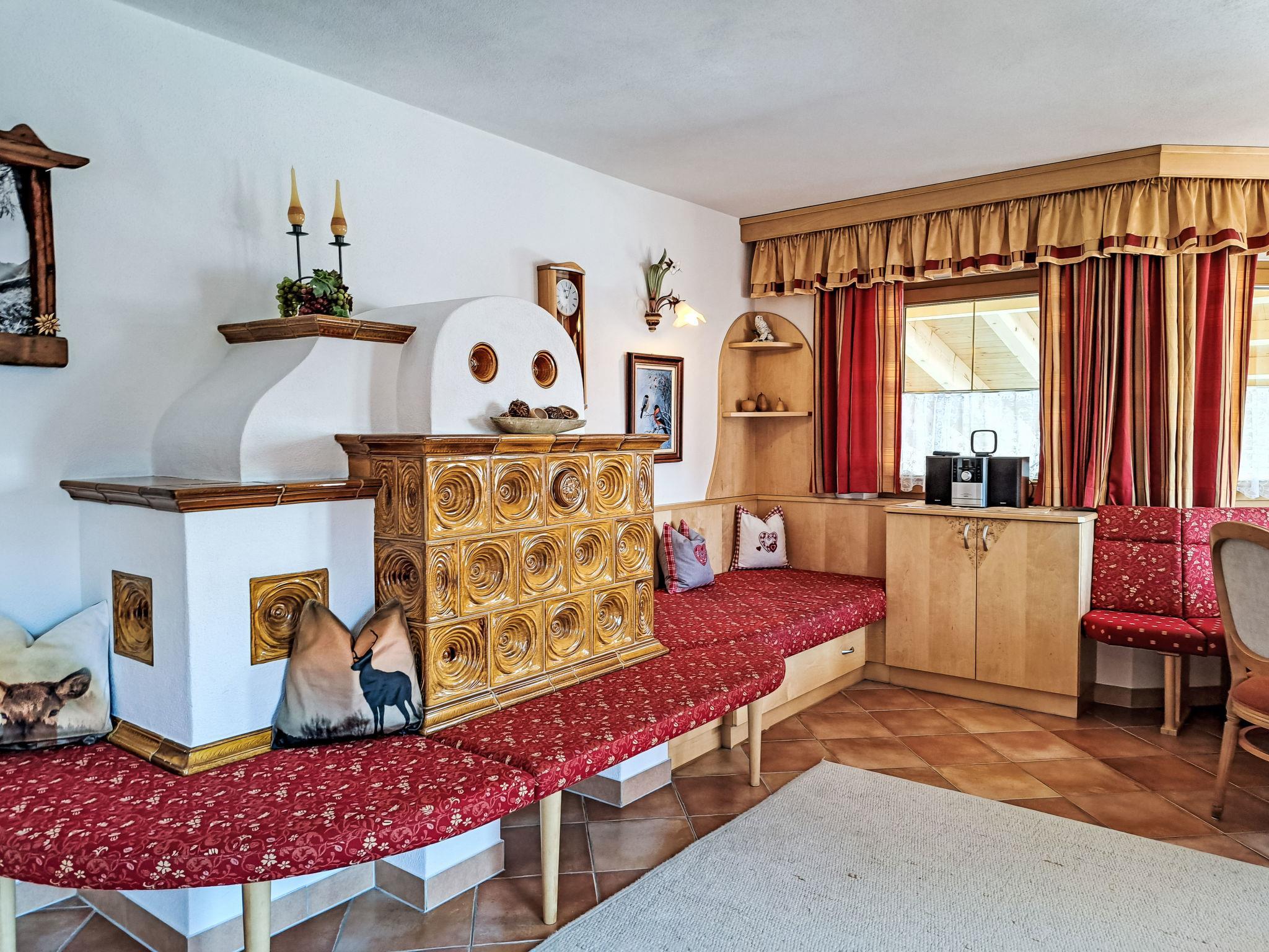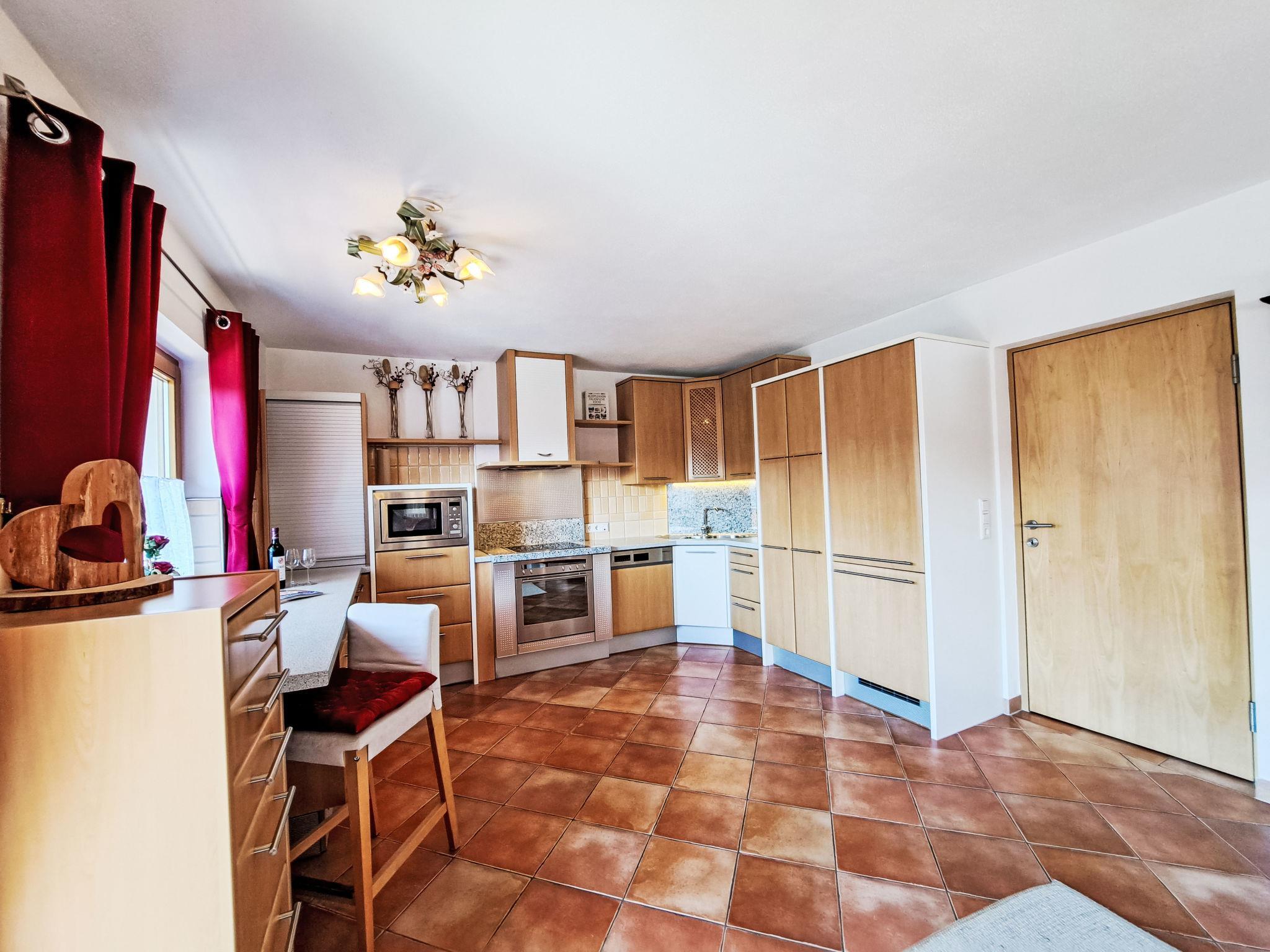 "Reichegger", 3-room house. Living/dining room with dining nook, satellite TV and radio. Exit to the balcony, to the terrace. Open kitchen (oven, dishwasher, 4 ceramic glass hob hotplates, toaster, kettle, microwave, freezer, electric coffee machine). Sep. WC. Underfloor heating. Upper floor: 1 room with 1 bed (97 cm, length 195 cm), 1 double bed. Exit to the balcony. 1 double bedroom. Exit to the balcony. Shower/WC. Oil heating, underfloor heating. Balcony 15 m2, terrace. Terrace furniture, balcony furniture. Marvellous panoramic view. Facilities: sauna (extra). Internet (WiFi, free). Please note: non-smoking house. Smoke alarm, fire extinguisher. Both rooms on the upper floor have a sloping roof with visible wooden roof trusses.