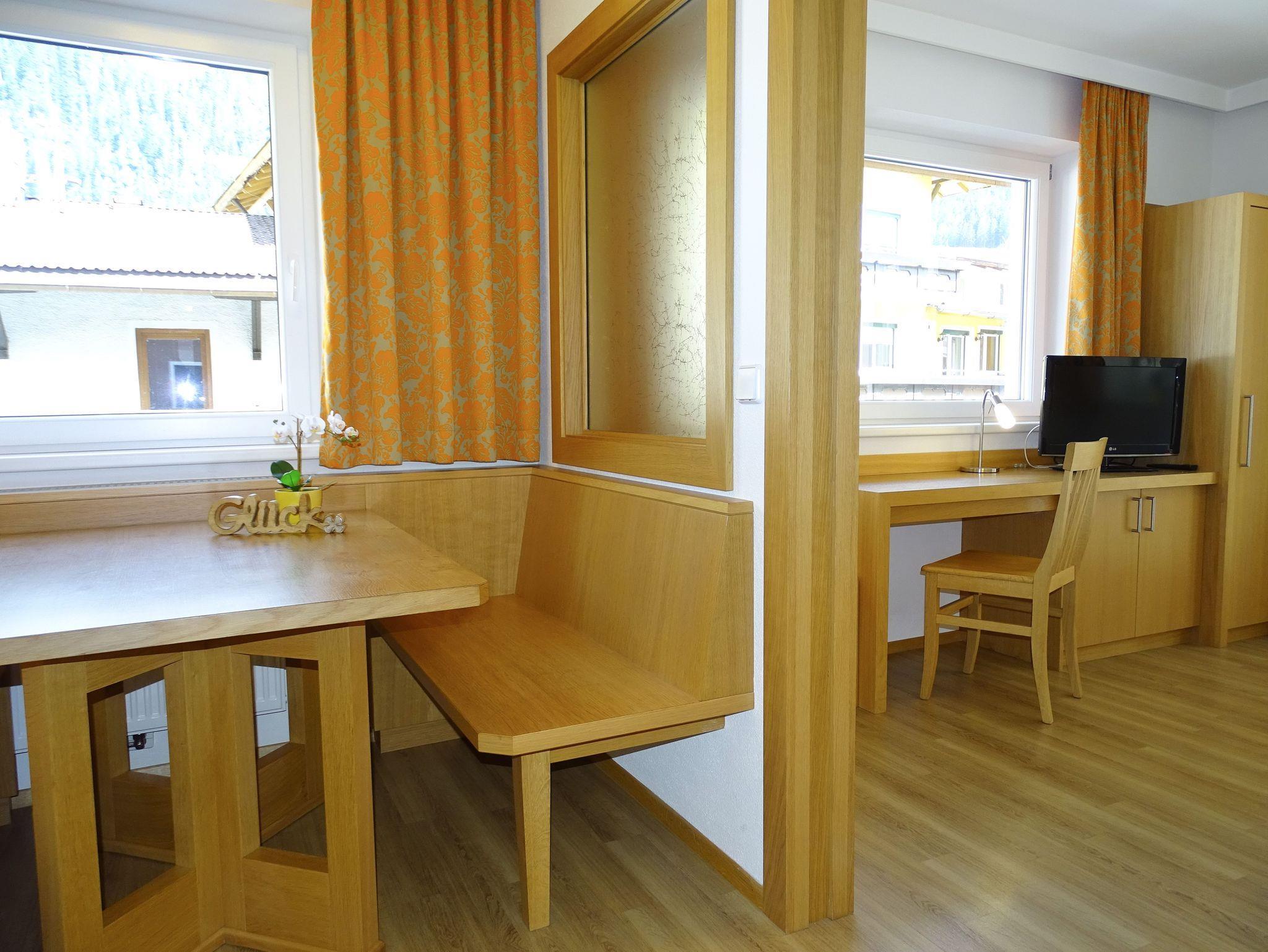 Die Ferienwohnungen für 2-6 Personen sind gut ausgestattet und verteilen sich auf zwei nebeneinander liegende Häuser. Fast alle Wohnungen haben einen Balkon mit Blick auf die umliegende Bergwelt und die Fußgängerzone von Mayrhofen. Im Haus gibt es einen Skiraum mit Skischuhtrockner. Die Ferienwohnungen sind Nichtraucherwohnungen. Pro Appartement steht ein kostenfreier Parkplatz zur Verfügung.