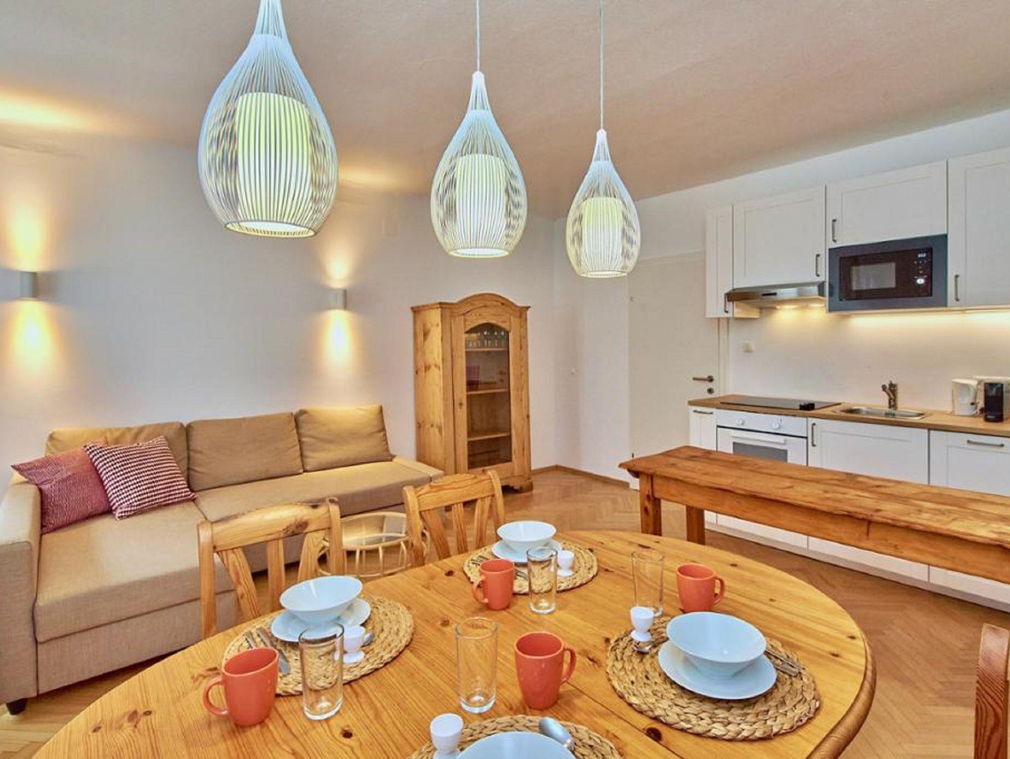 50 m² Apartment für bis zu 4 Personen (+ 1 Babybett gegen Gebühr), mit Schlafzimmer (Doppelbett) und Wohnküche mit Doppel-Schlafcouch