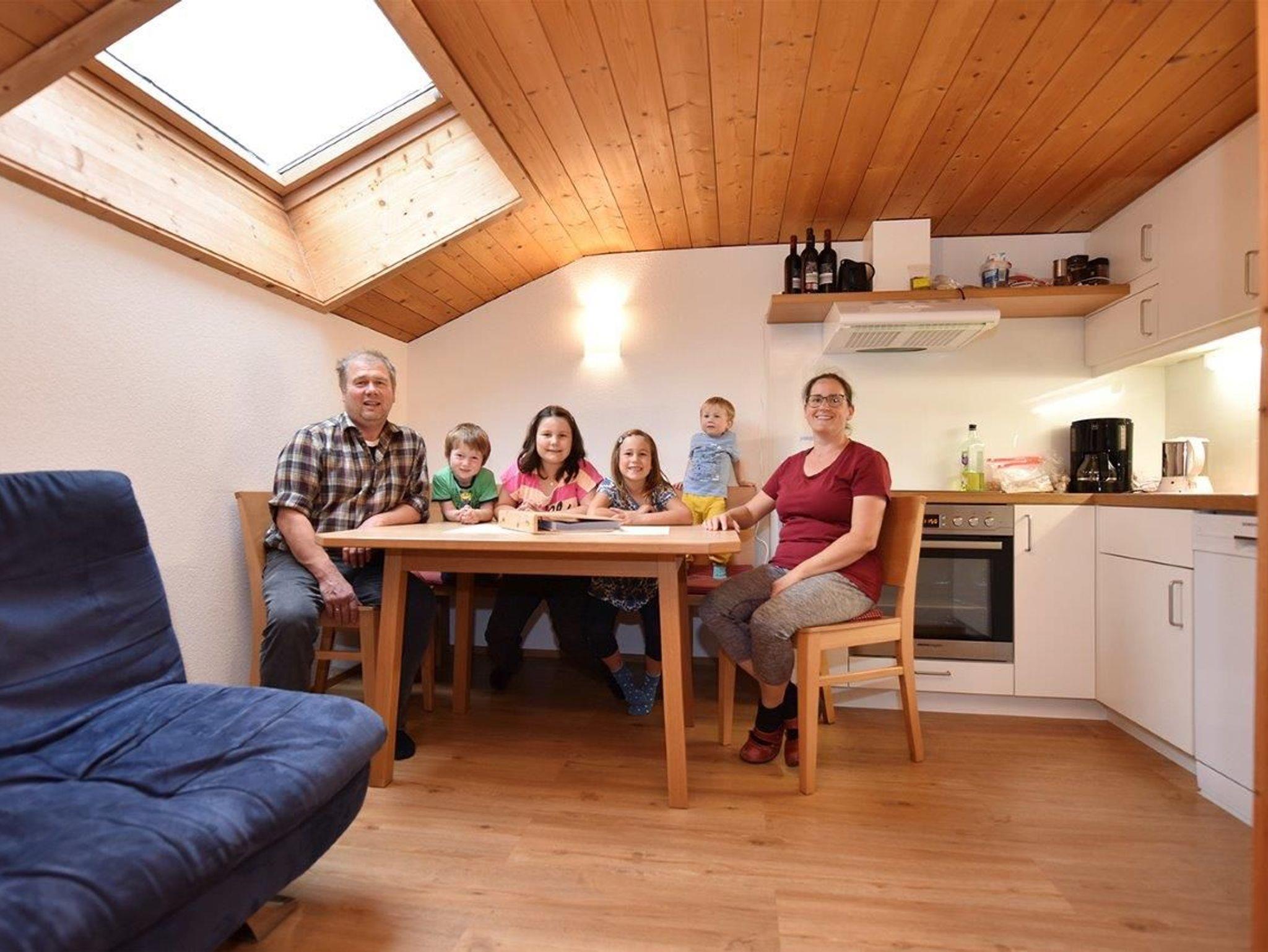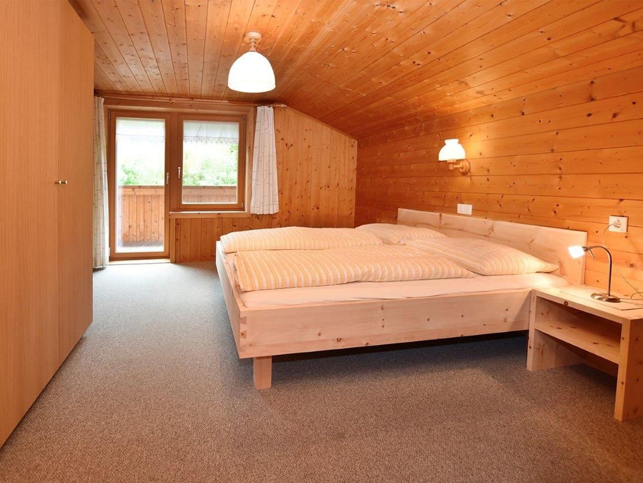 Diese gemütliche, große Ferienwohnung (ca. 60m²) mit vollausgestatteter Wohnküche befindet sich im 2. Stock (Dachgeschoss). Dusche, Waschbecken und WC sind in einem Raum. Über die zwei Schlafräume erreichen Sie den südseitig gelegenen Balkon, der eine schöne Aussicht bietet. Diese Wohnung ist in Fichtenholz getäfelt und schafft so eine heimelige Atmosphäre.