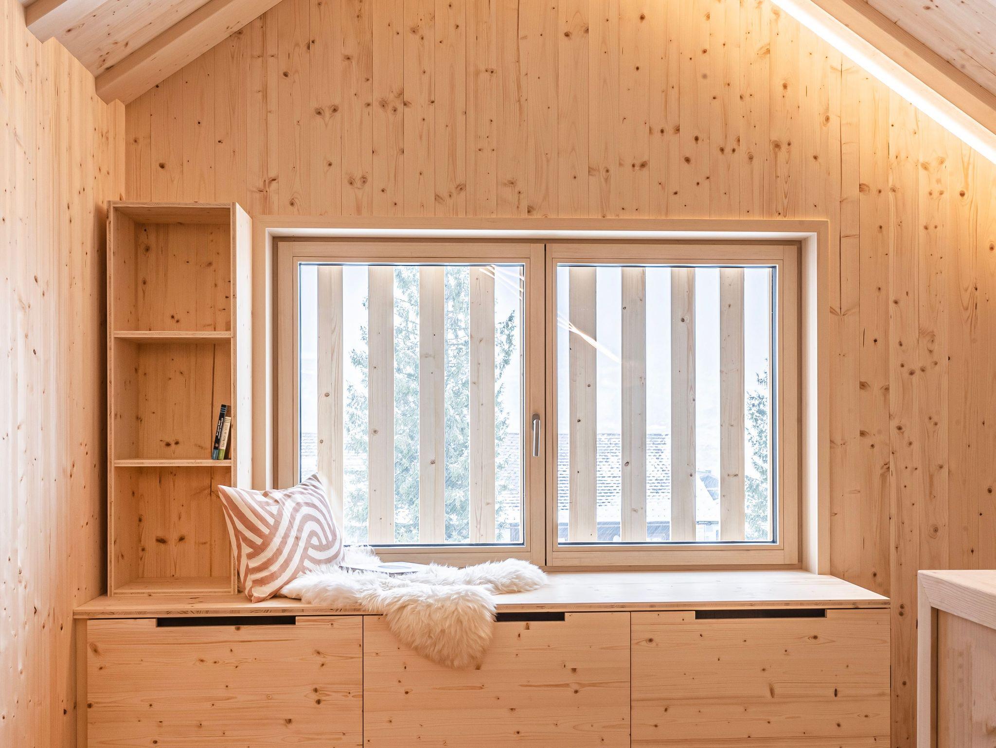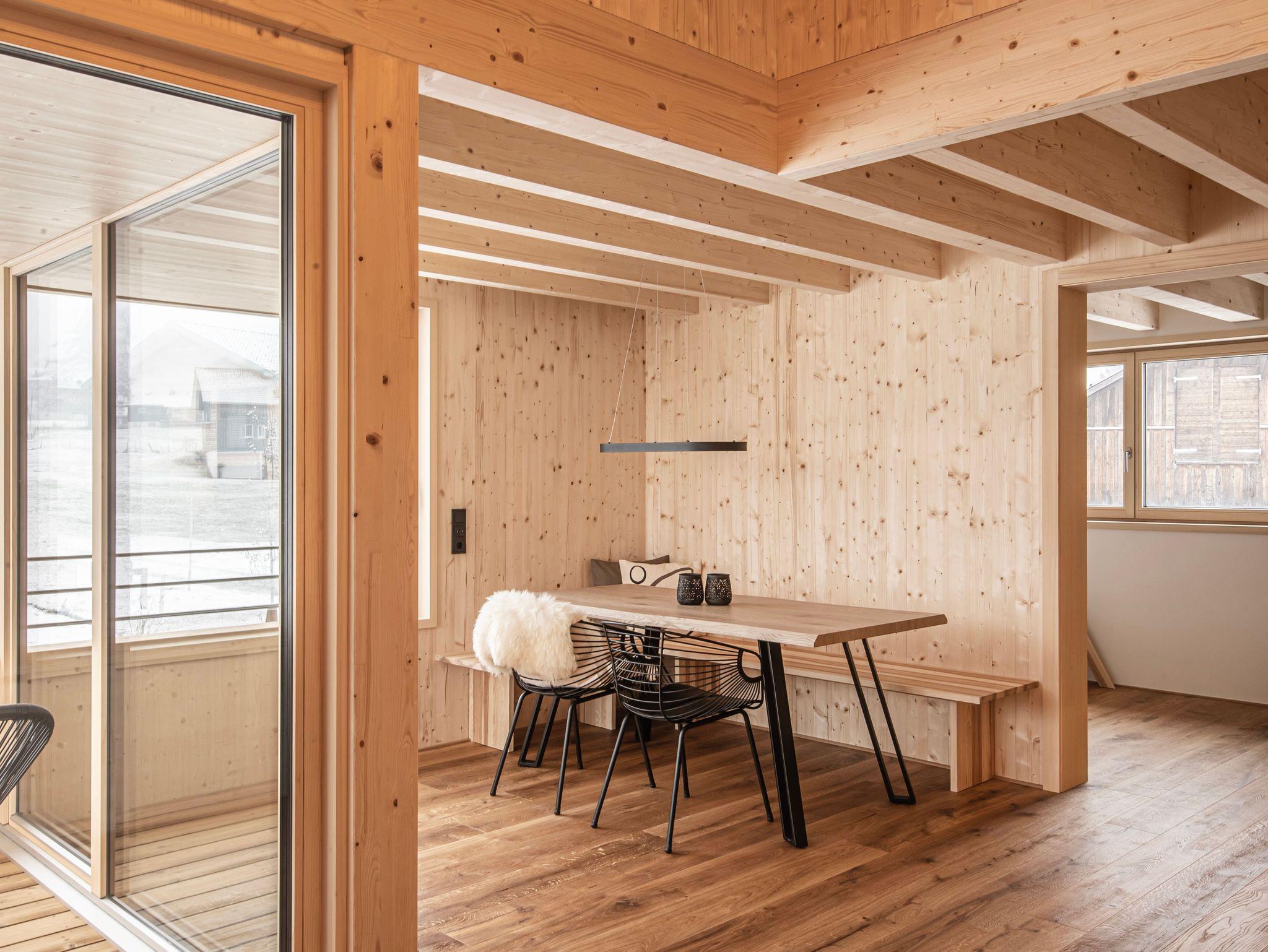 Das verwendete Fichtenholz bringt heimelige und gemütliche Atmosphäre ins Ferienhaus.
