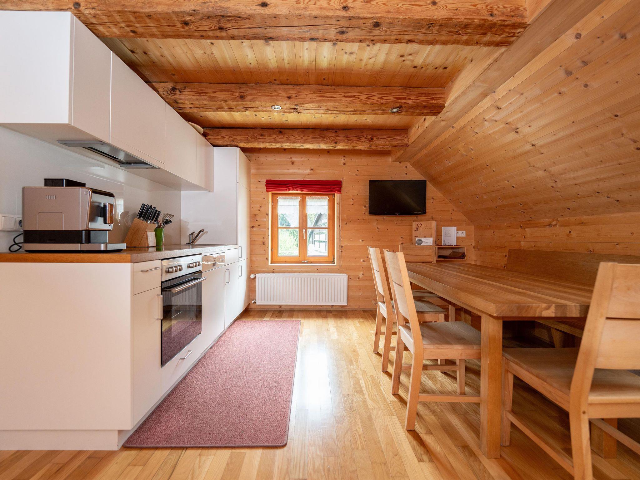 Die Wohnung „Bergblick“ bietet ausreichend Platz für Familien. Sie liegt im Dachgeschoss und grenzt direkt an die Ferienwohnung „Hofblick“.