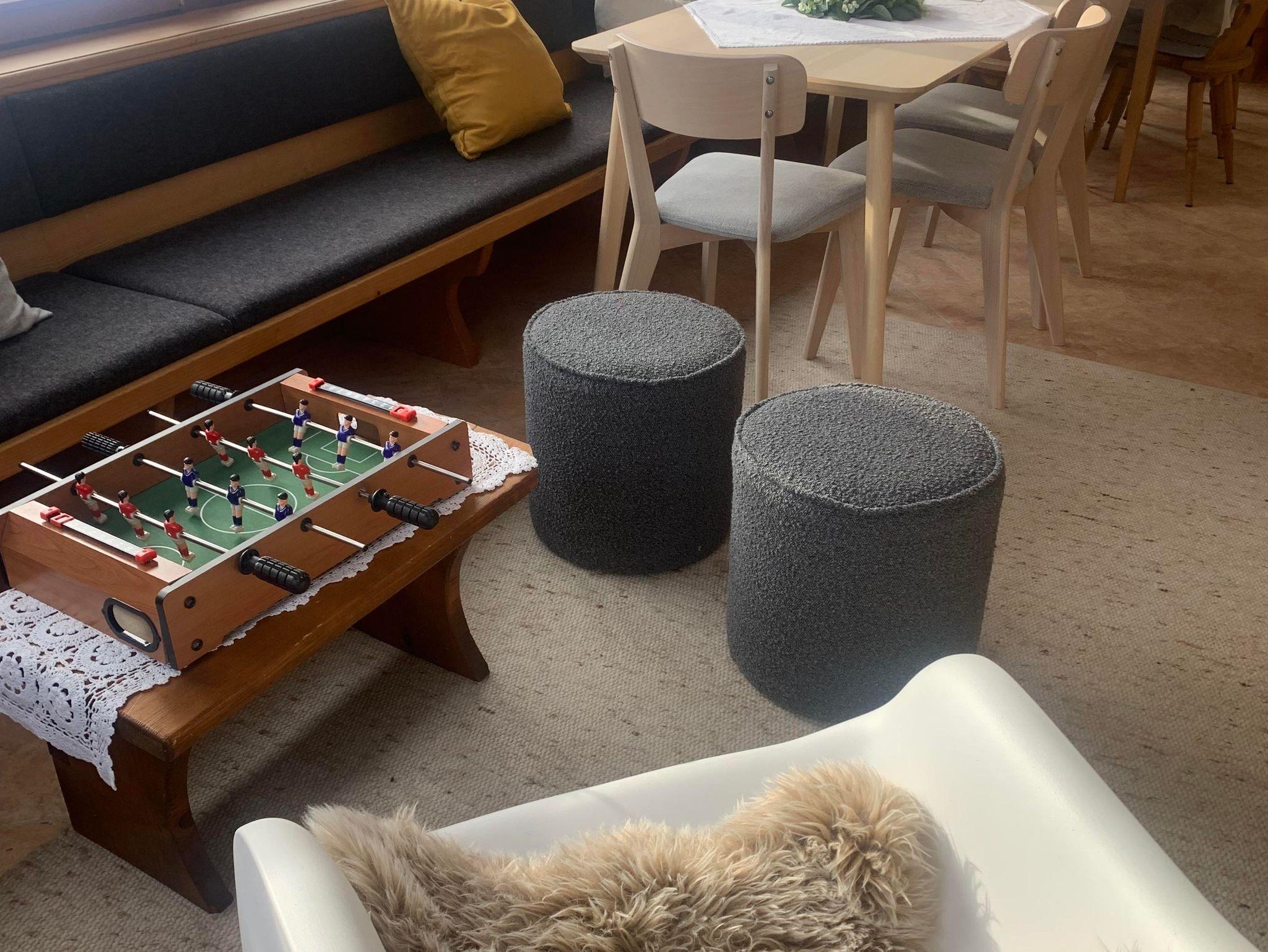 Das renovierte Apartment im 1. Obergeschoss bietet auf 74 m² viel Platz für Familien oder kleinere Gruppen. Es verfügt über ein Doppelzimmer und ein Dreibettzimmer aus Zirbenholz – ideal für 5 Personen. Bei Bedarf bietet das ausziehbare Sofa im Essraum Schlafmöglichkeit für 2 weitere Gäste.