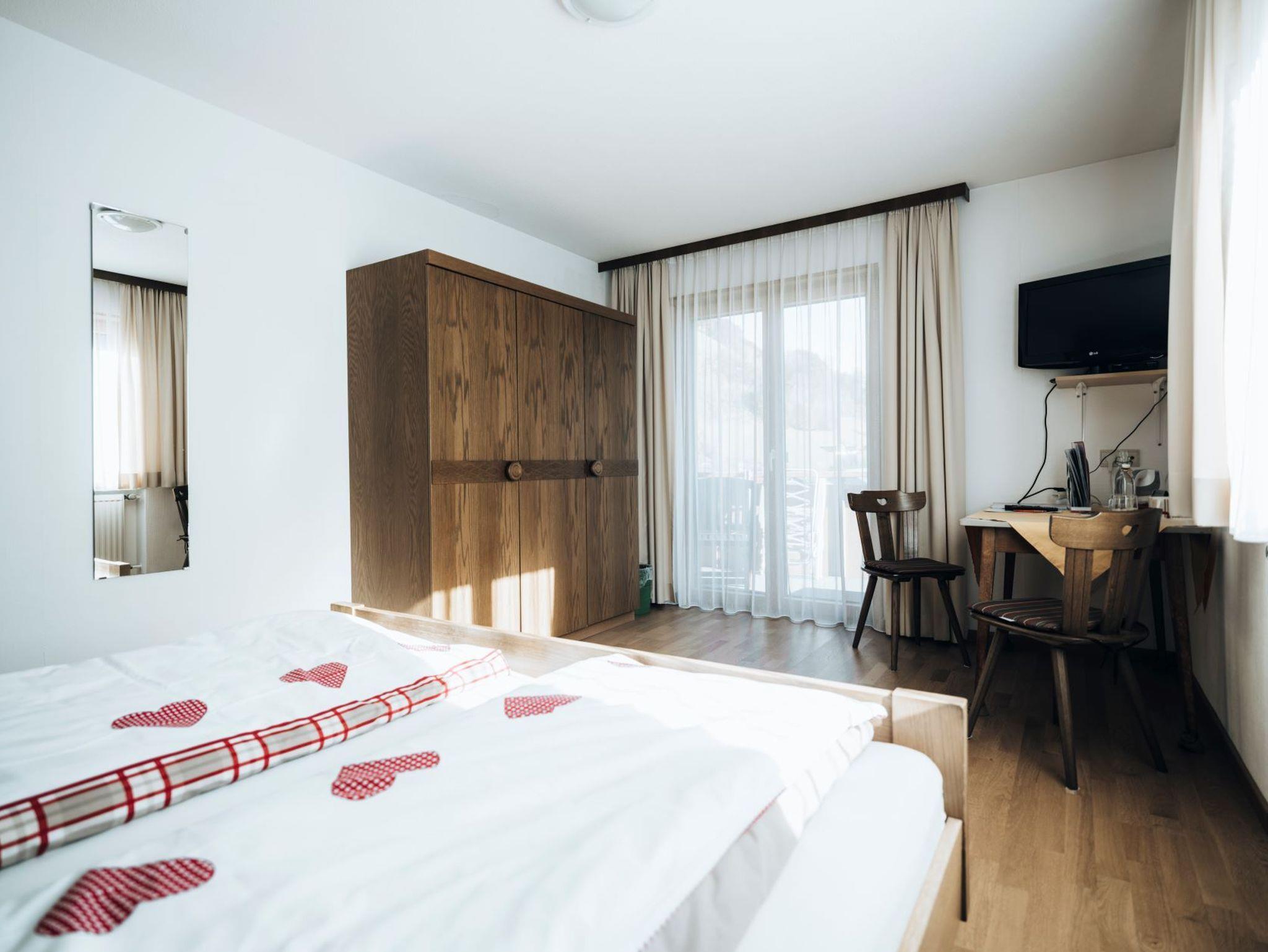 Dieses 24 m2 große Zimmer ist allergikerfreundlich und mit Holzparkett ausgelegt. Der Balkon ist nach Osten ausgerichtet und Sie haben die Kanisfluh im Blick. Der Balkon kann auch abgetrennt werden. Die Naßzelle ist mit Dusche, WC, Haarfön, flüssige Handseife, Hand- und Duschtücher ausgestattet. Weiters ist ein Flachbild-TV, sowie ein Safe und WLAN, Kühlschrank vorhanden. KEINE KOCHGELEGENHEIT!!!! Ein Parkplatz steht pro Zimmer zur Verfügung.