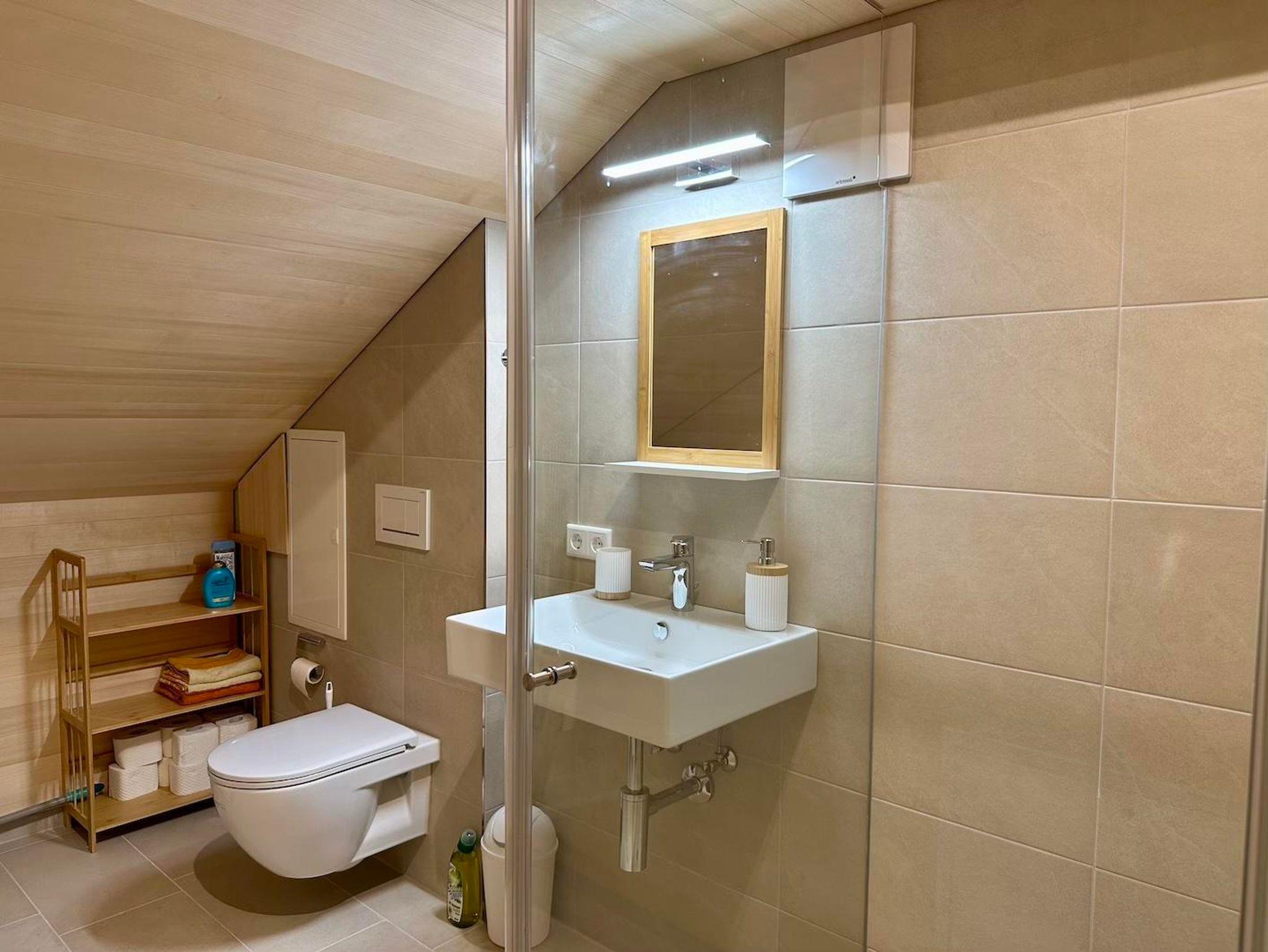 • Dusche/WC sowie Waschmaschine und Wäscheständer