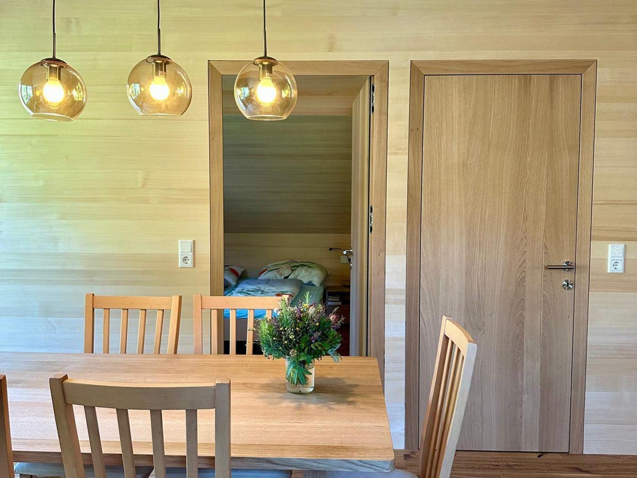 Die liebevoll neu errichtete Ferienwohnung (ca. 60 m2) ganz in Holz ist voll ausgestattet und bietet Platz für bis zu 4 Personen (2 Doppelzimmer). Ihr werdet dort alles finden, was das Herz begehrt – außer einem Fernseher, damit ihr richtig abschalten könnt…