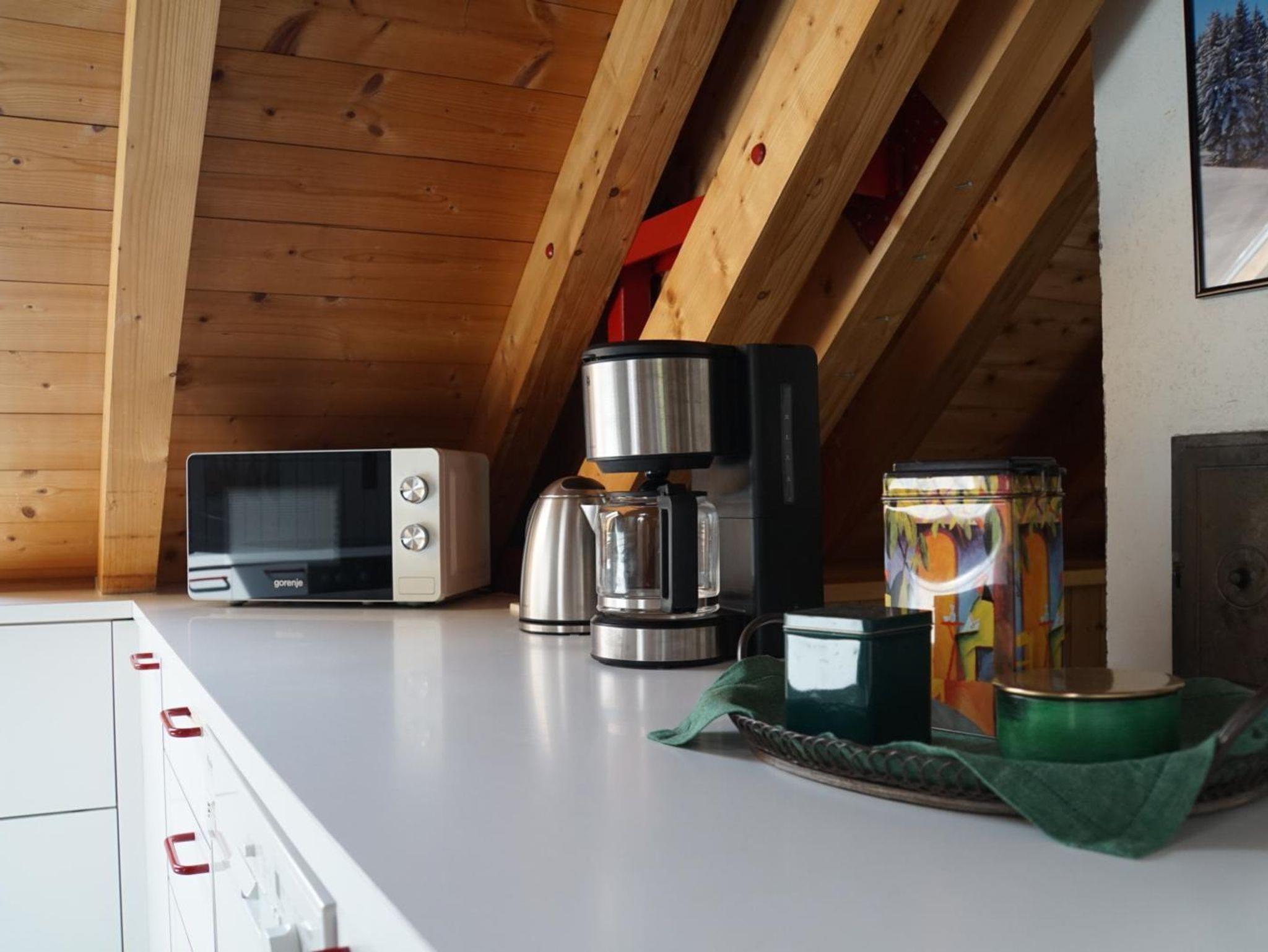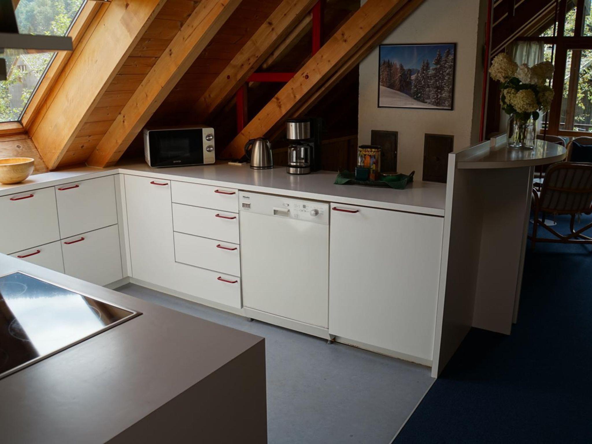 Die Küche ist ausgestattet mit genügend Kochutensilien, einem Geschirrspüler, Kaffeemaschine, Wasserkocher und Toaster.