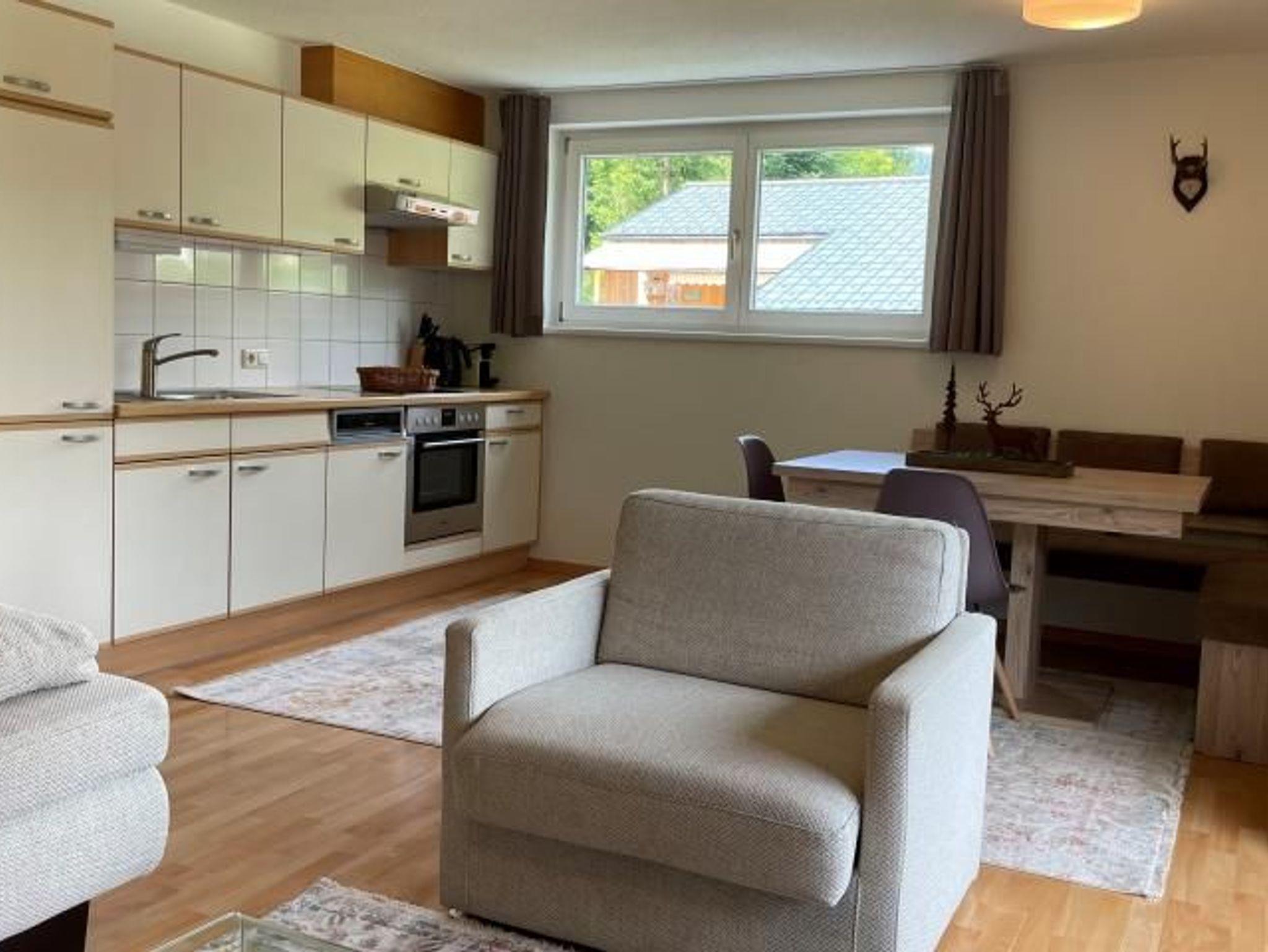Die Ferienwohnung im 1. OG ist mit ihren ca. 54 m² ein herrliches Urlaubs-Zuhause für zwei bis 4 Personen. Ausgestattet ist das Appartement mit einem Schlafzimmer, einem Badezimmer, einem seperaten WC, einem Wohnzimmer mit heimeliger Eckbank und einer voll ausgestatteten Küche inkl. Geschirrspüler. Das Sofa (Ausziehcouch 160x200cm) kann auch als zusätzlicher Schlafplatz genützt werden und der Sessel (80x200cm) kann auch noch zu einer zusätzlichen Schlafstätte ausgezogen werden. Ein 40 Zoll Samsung Smart TV und ein Bluerayplayer sind vorhanden. Bei Sonnenschein nützen Sie den ca. 16 m² grossen Balkon auf der nach Süden ausgerichteten Wohnung.