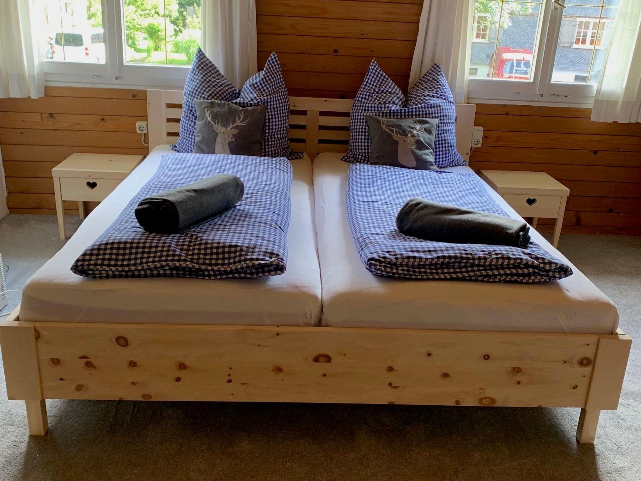 Das renovierte 38 m² große Apartment im 1. Obergeschoss bietet Platz für bis zu 4 Personen. Es verfügt über ein Doppelzimmer mit Smart-TV sowie ein Wohnzimmer mit ausziehbarer Couch für zwei weitere Gäste.