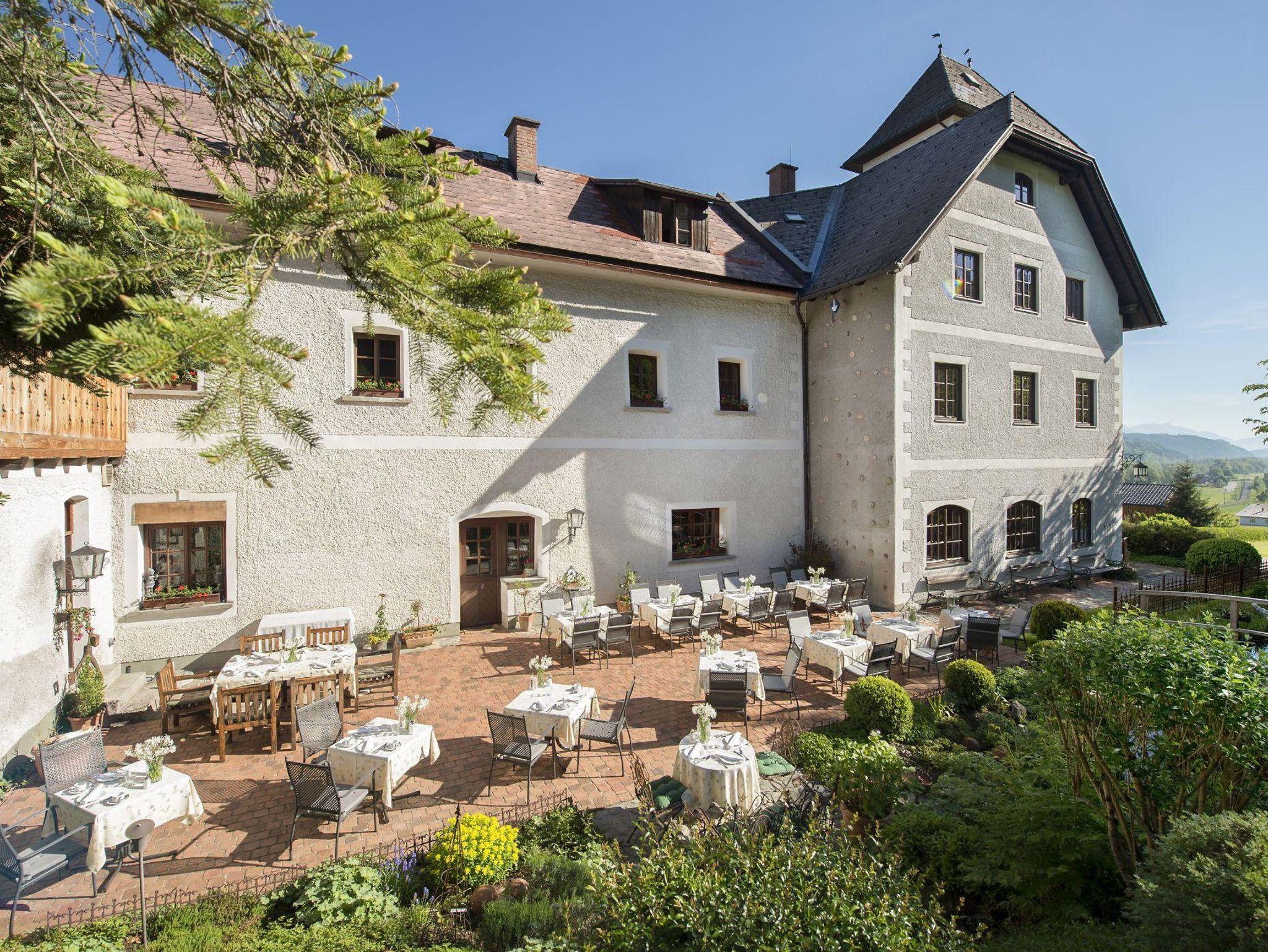 Schlossromantik pur in den ruhigen, kuscheligen, wohlig warmen, zirbenholzduftenden Gemächern, auf der Sonnenterrasse am Schloss-Teich oder im historischen Gewölbe von anno 1150.