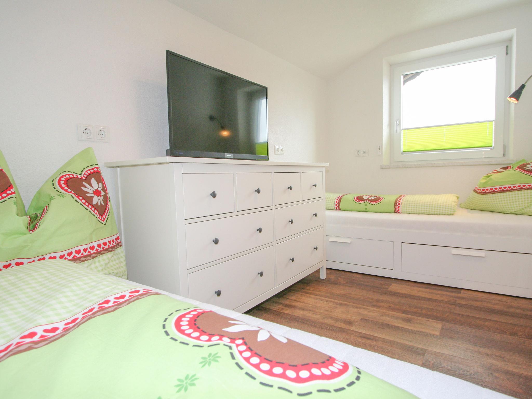 5-room semi-detached house 140 m2. Entrance hall. 1 double bedroom. Living/dining room with satellite TV (flat screen). Kitchen (oven, dishwasher, 4 ceramic glass hob hotplates). Shower/WC. Top floor: 1 double bedroom. 1 room with 1 bed, 1 double bed and satellite TV (flat screen). 1 room with 2 beds. Shower/WC. Balcony, terrace. Terrace furniture, barbecue. Beautiful view of the mountains and the countryside. Facilities: Internet (WiFi, extra). Please note: non-smokers only. Maximum 1 pet/ dog allowed.