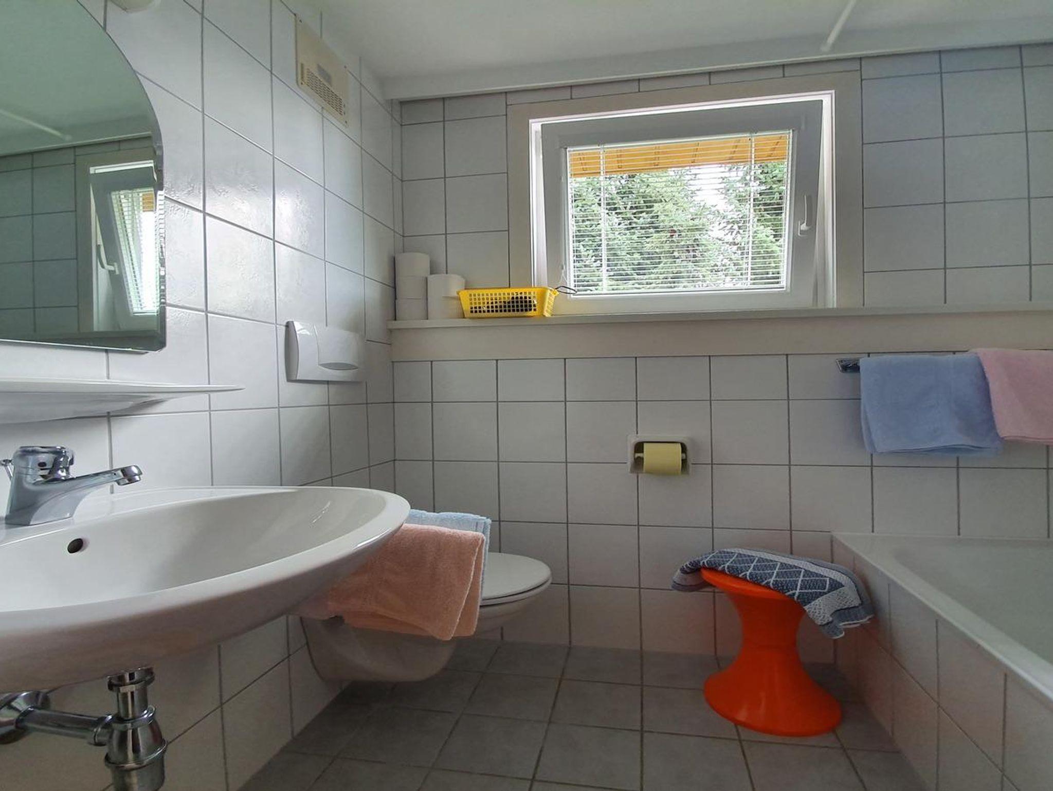 Appartement für 2-4 Personen, mit Südterrasse, gelegen im Parterre der Süd-Westseite des Hauses. Die Wohnung ist ca. 55 m² groß und verfügt über ein Wohnzimmer mit Schlafcouch für 2 Personen, eine kleine separate Küche mit 2 Kochplatten, Kühlschrank, Geschirrspüler, Wasserkocher und Toaster, ein Schlafzimmer für 2 Personen und ein Bad/WC.