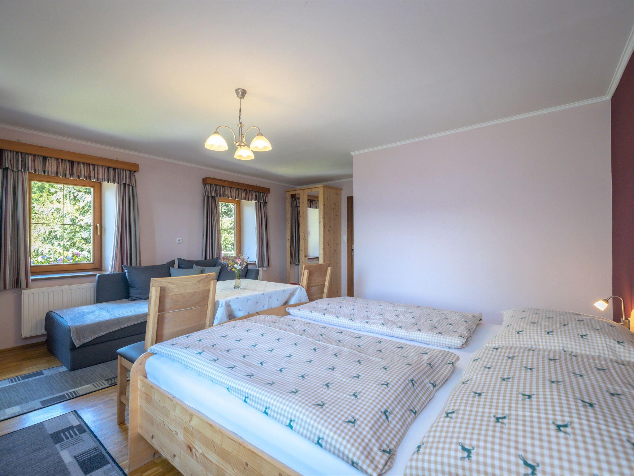 Große, gemütliche Komfortzimmer, hier haben bequem auch vier Personen Platz; mit Dusche/WC, SAT-TV und Balkon mit Seeblick