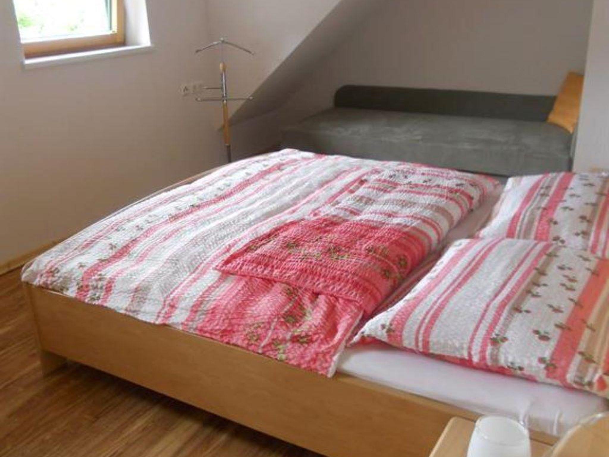 Die gemütliche Ferienwohnung Seeblick befindet sich im 2. Stock des Bauernhauses und bietet Platz für 2-5 Personen. Die Wohnung ist aufgeteilt in zwei getrennte Schlafzimmern. Das erste Doppelzimmer verfügt über ein Doppel- und Einzelbett mit Ostfenster. Das zweite Schlafzimmer ist mit einem Doppelbett ausgestattet und Richtung Westen ausgerichtet.