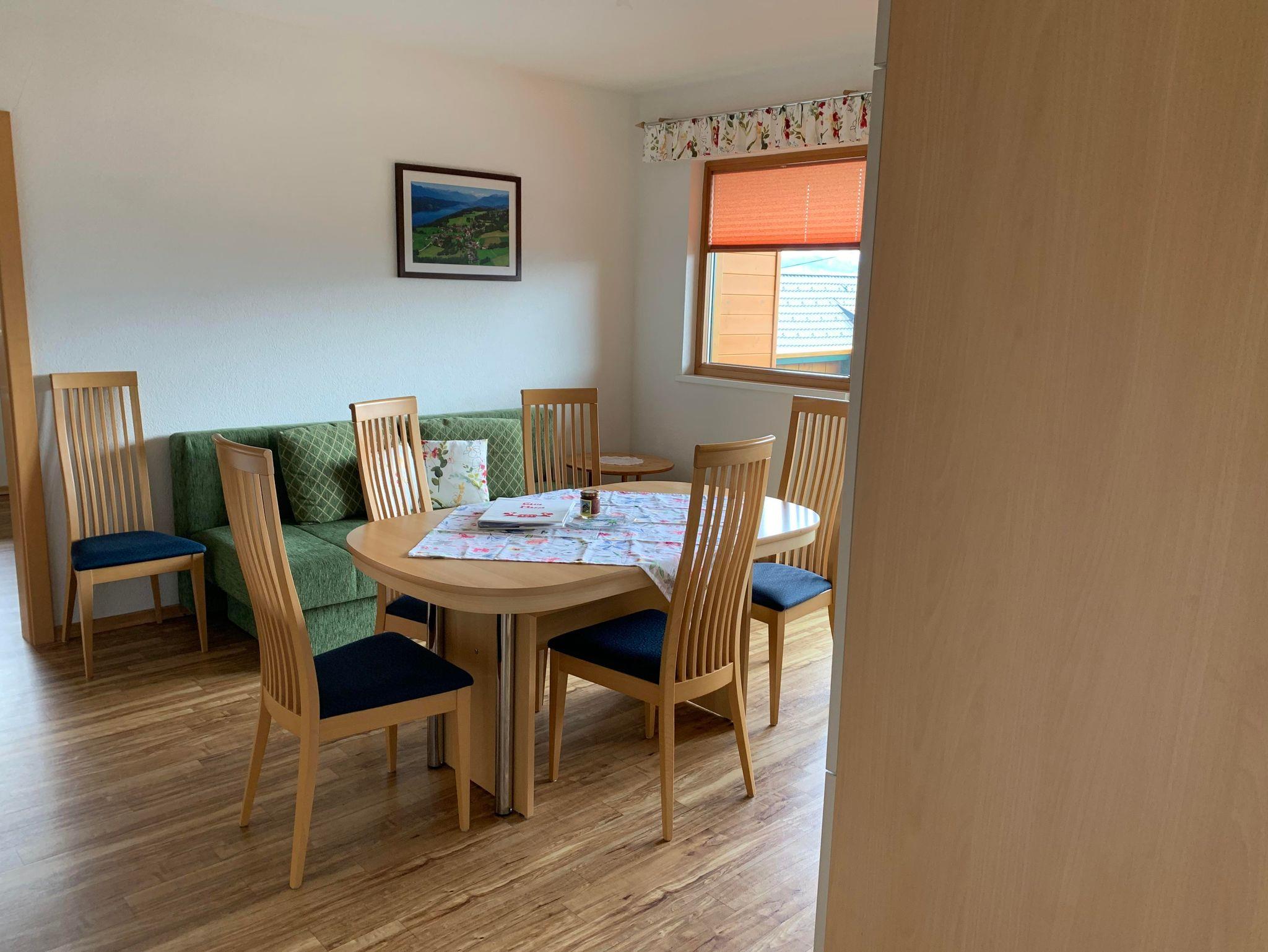 Das Highlight der Wohnung ist der Südbalkon mit Blick auf den Millstätter See. Die Wohnküche ist voll ausgestattet und verfügt über einen Fernseher mit Sat-TV und kostenlosem WLAN. Bettwäsche und Handtücher werden bereitgestellt. Im großzügigen Badezimmer gibt es eine ebenerdige Dusche, WC sowie eine Waschmaschine.
