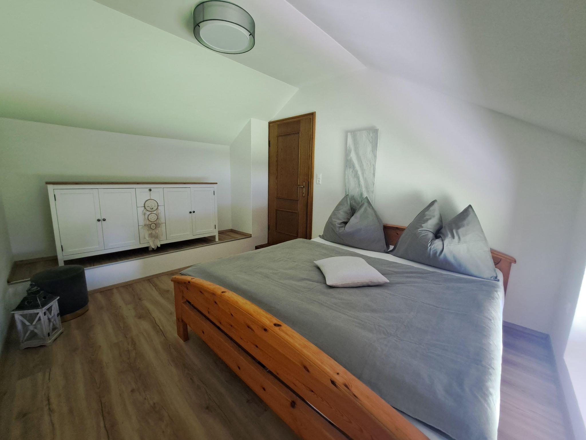 Schlafzimmer 1: Ein gemütliches Doppelbett mit direktem Blick auf den Millstätter See – der perfekte Ort, um nach einem erlebnisreichen Tag zu entspannen.