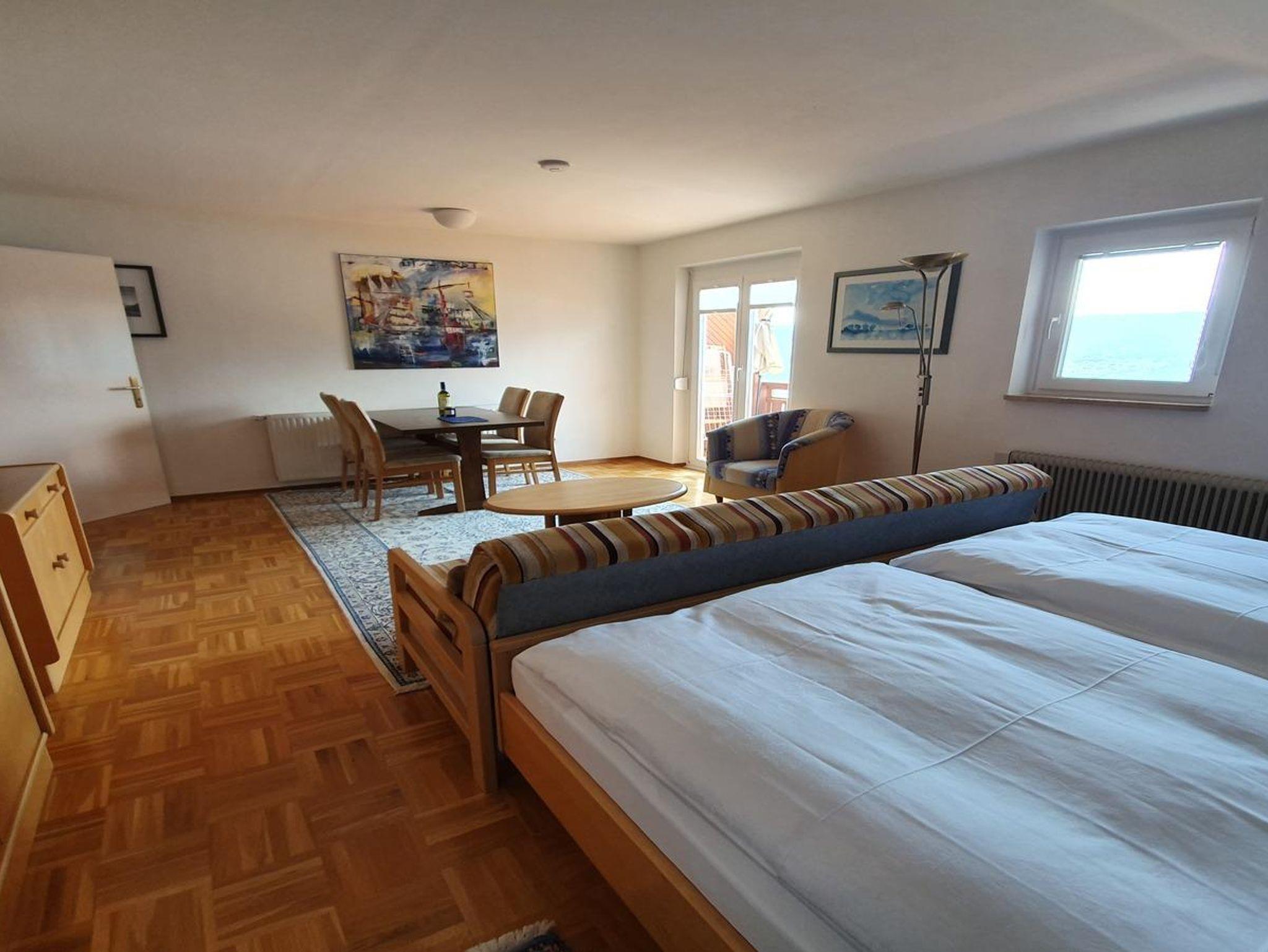 Appartement für 2-4 Personen mit Balkon und Seeblick, im 1. Stock auf der Süd-Westseite des Hauses. Die Wohnung ist ca. 63 m² groß und verfügt über ein großzügiges Wohnzimmer mit Kochzeile, ein separates Schlafzimmer und eine Dusche/WC.