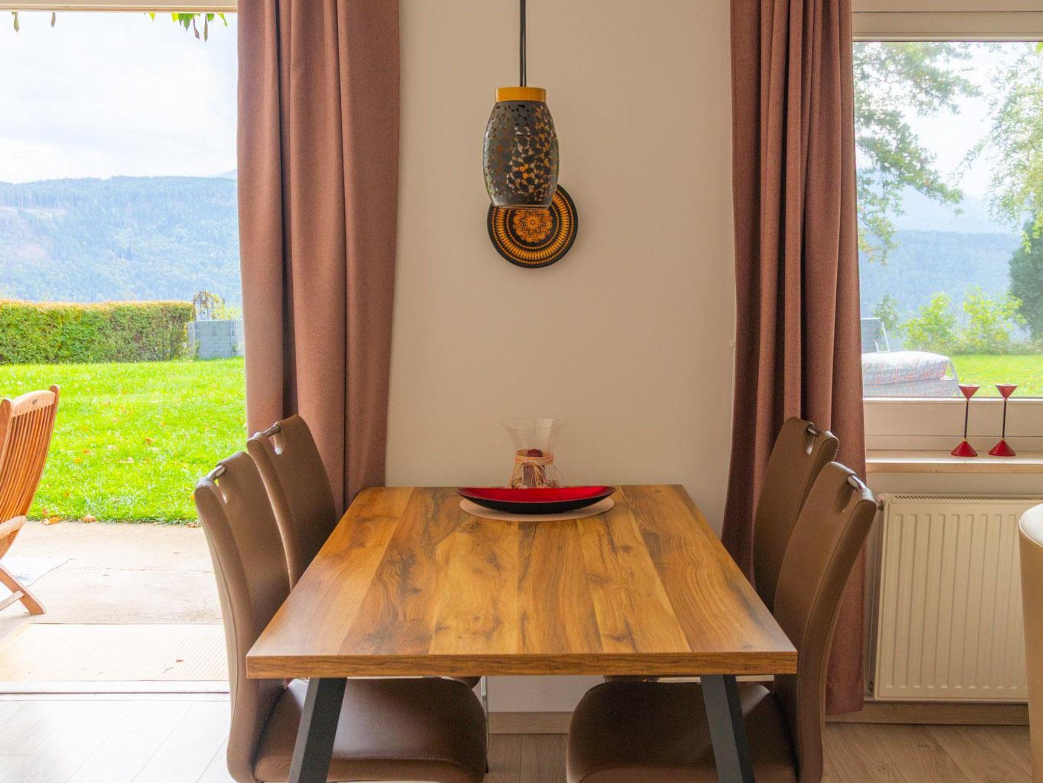 Das Apartment ist liebevoll eingerichtet; hat eine fast komplette tiefe Fensterfront zur Sonnenseite, was den Raum komplett lichtdurchflutet macht und der Blick in´s Grüne, in den Garten, in die Berge ist einmalig.