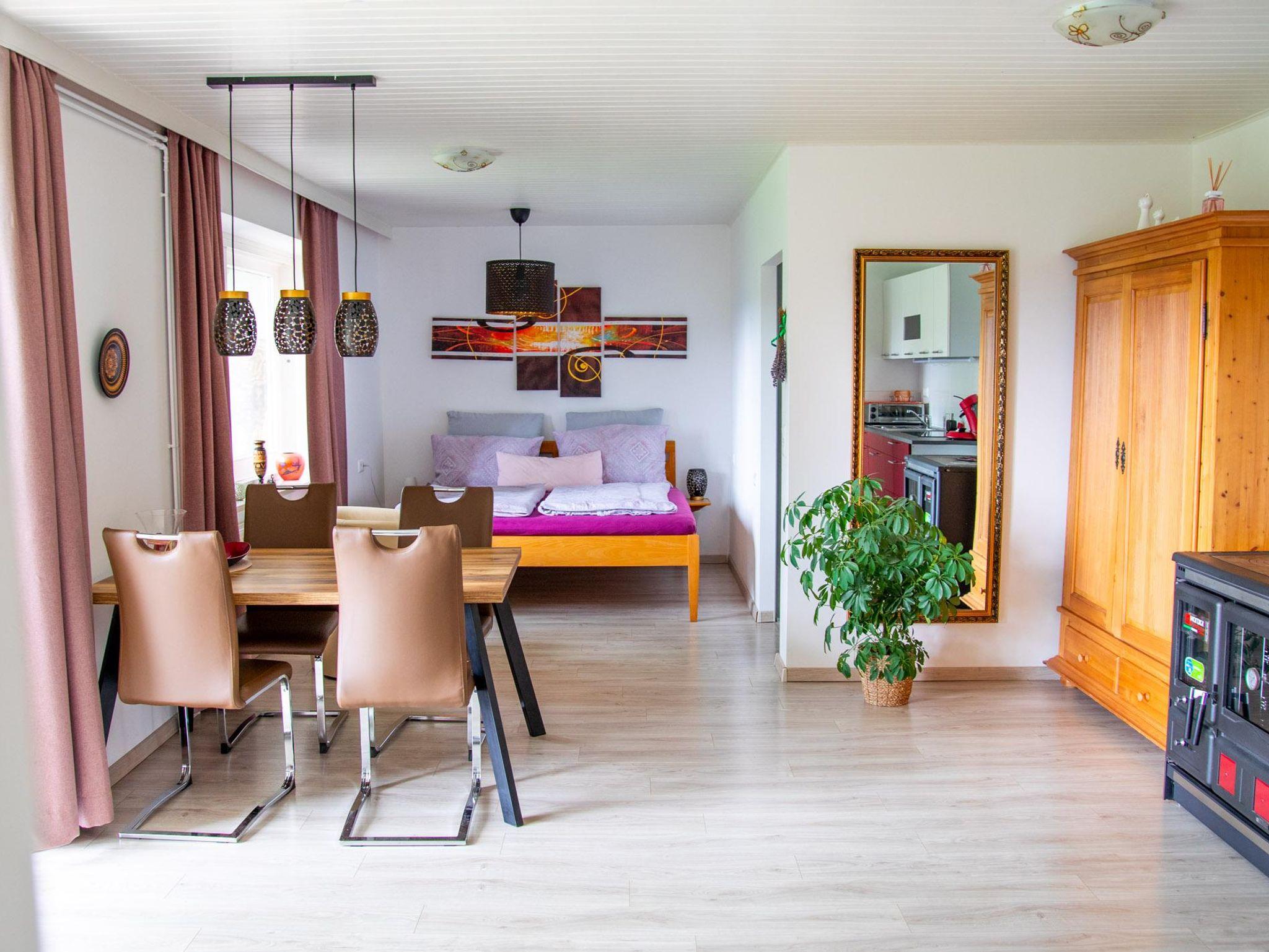 Unsere 3 komplett neu sanierten und liebevoll eingerichteten Ein-Raum-Appartments liegen im Anbau neben unserem Wohnhaus, den Haupteingang teilen wir.
