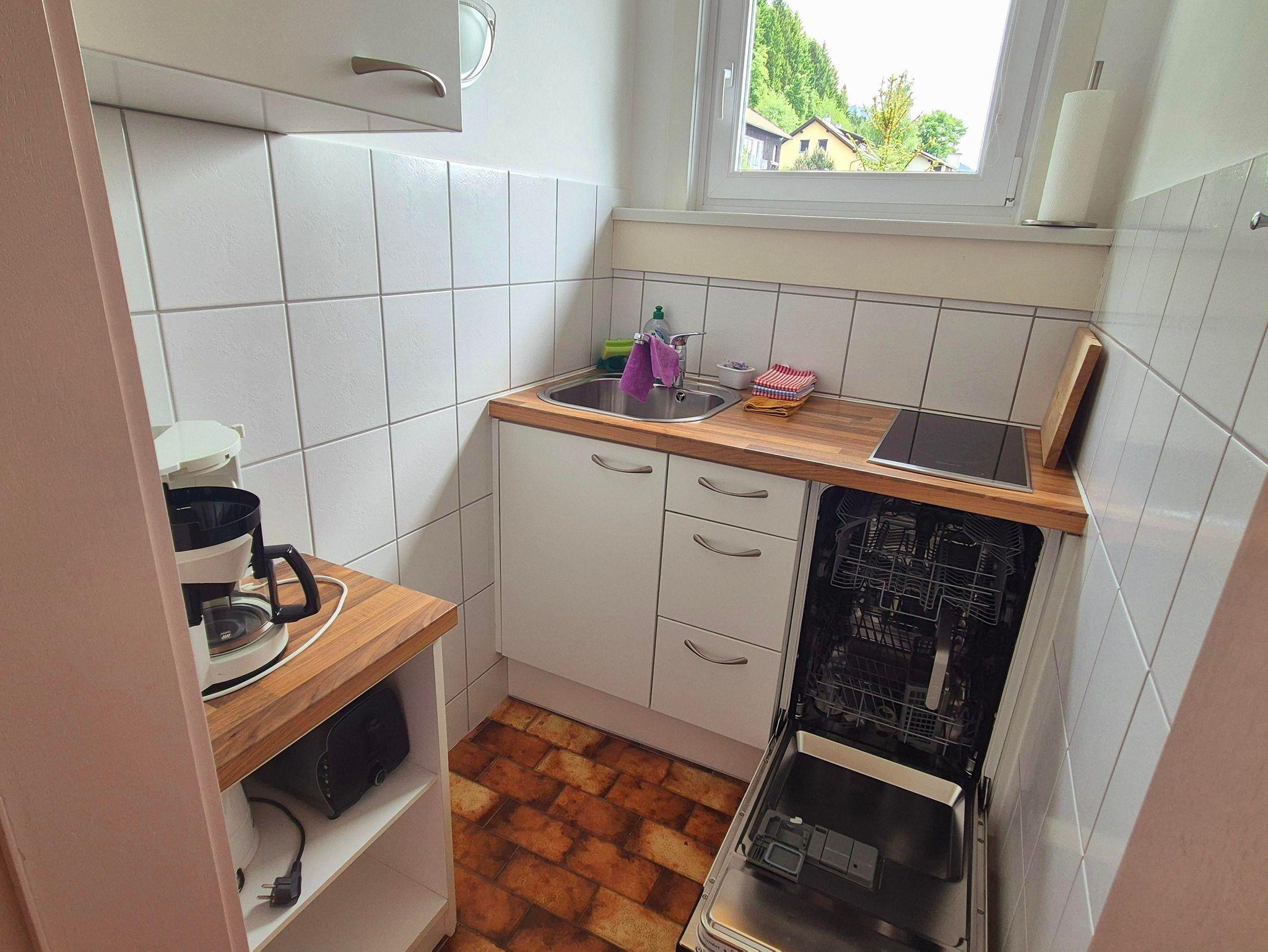 Die Wohnung ist ca. 53 m² groß und verfügt über ein Wohn-/Schlafzimmer mit einem Doppelbett, ein separates kleines Wohnzimmer, ein Bad/WC und eine kleine Küche mit 2 Herdplatten, Kühlschrank, Geschirrspüler, Wasserkocher, Kaffeemaschine und Toaster.
